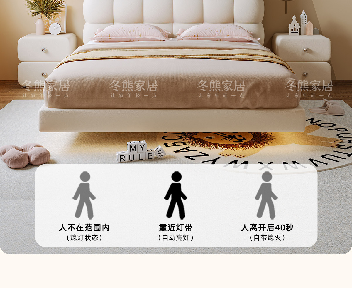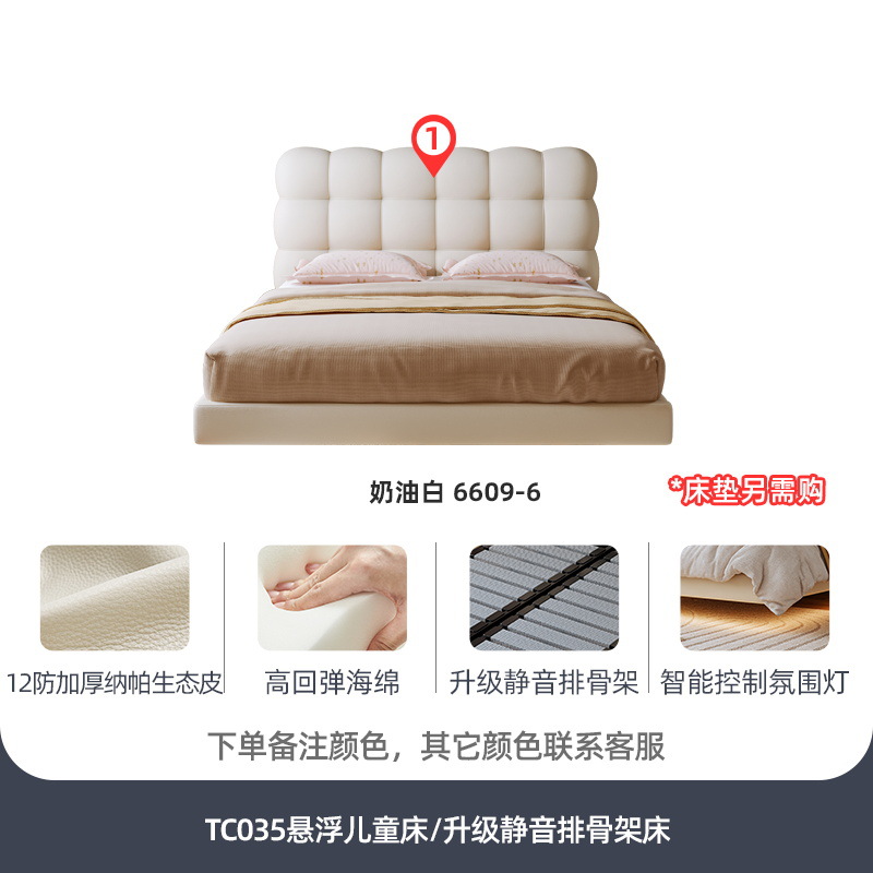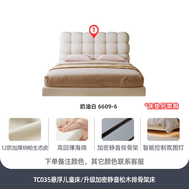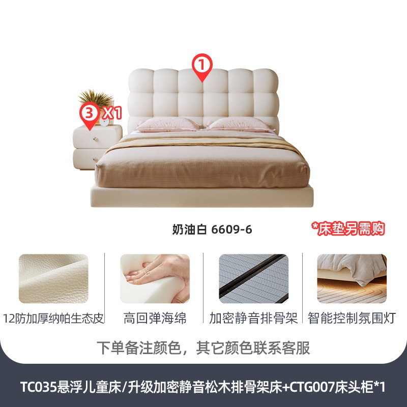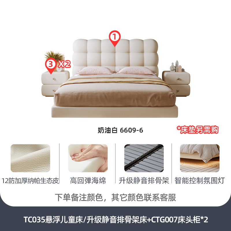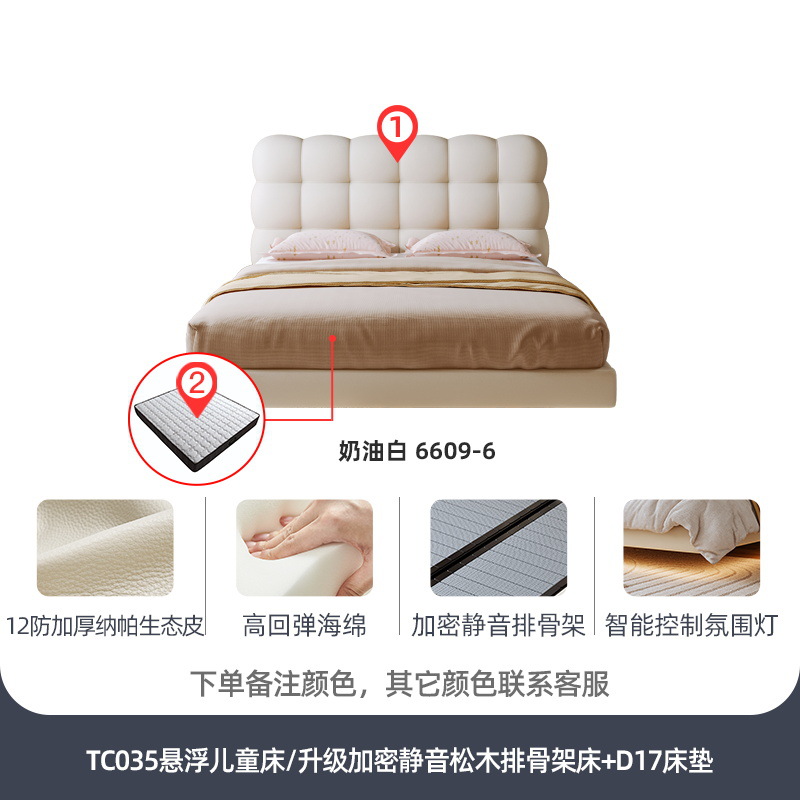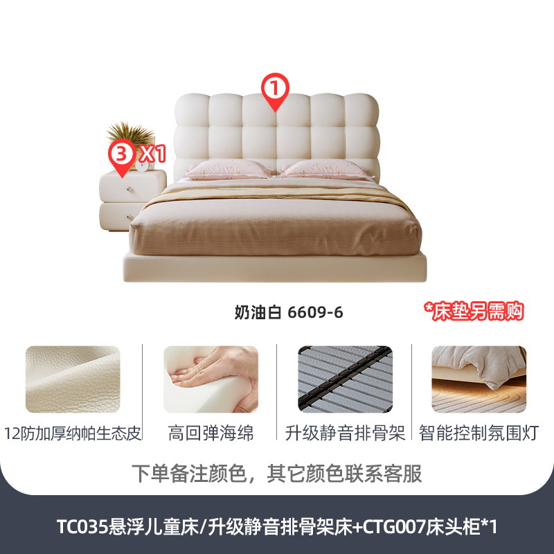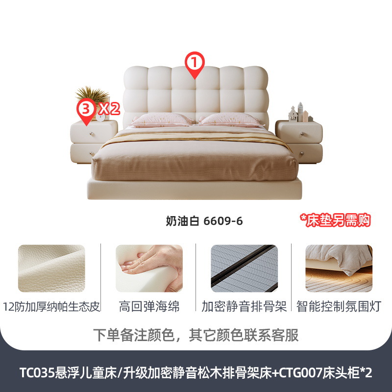 • 1층 소가죽 침대 + D17 쿠션 + 캐비닛 * 1/업그레이드된 무소음 립 프레임
