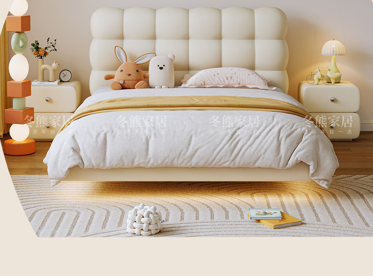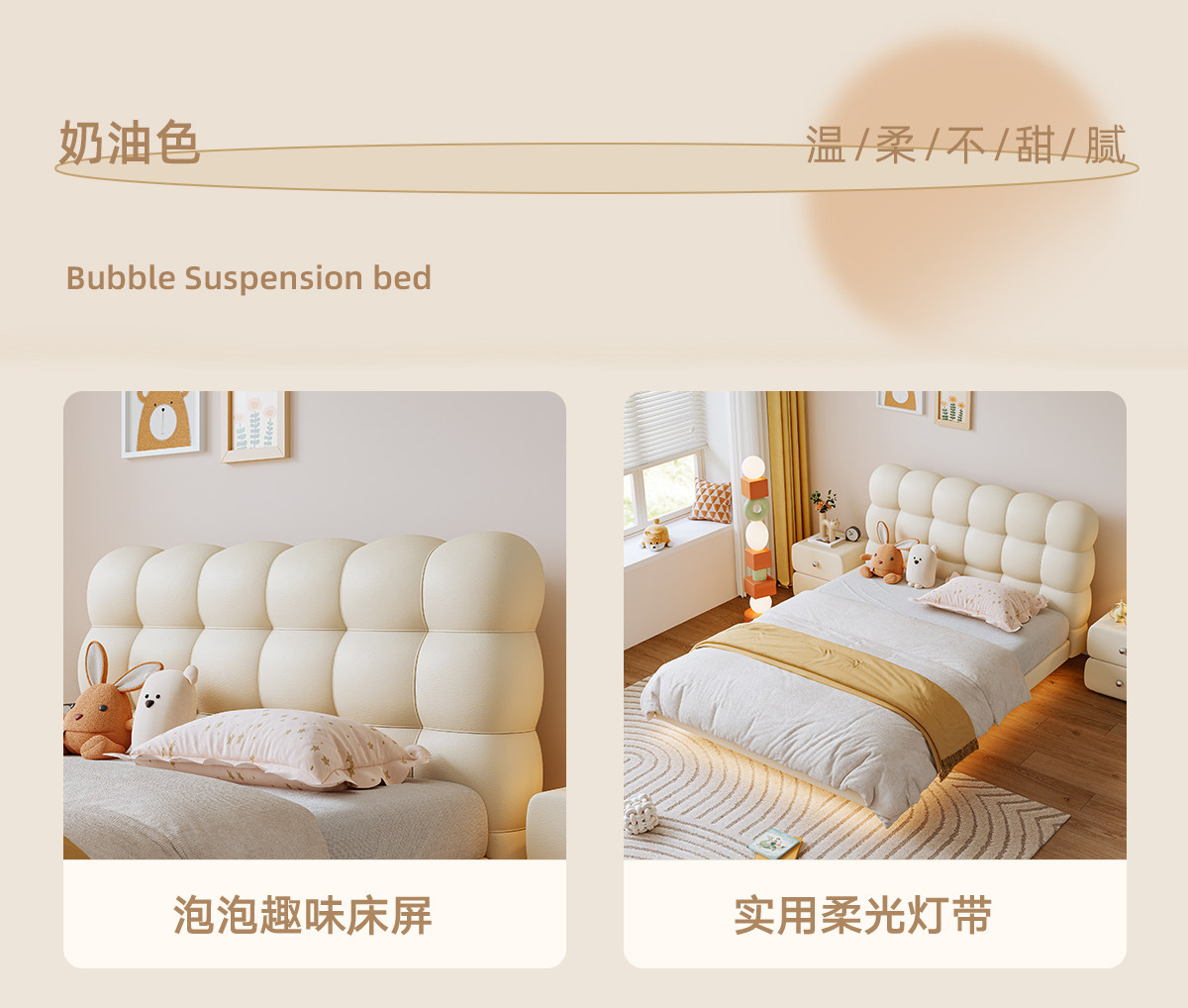 통위 특유의 모던 심플 스타일의 소녀 공주 침대, 여자아이와 남자아이를 위한 크림 스타일 침실 가정용 1.5m 서스펜션 어린이 침대스토어 가기