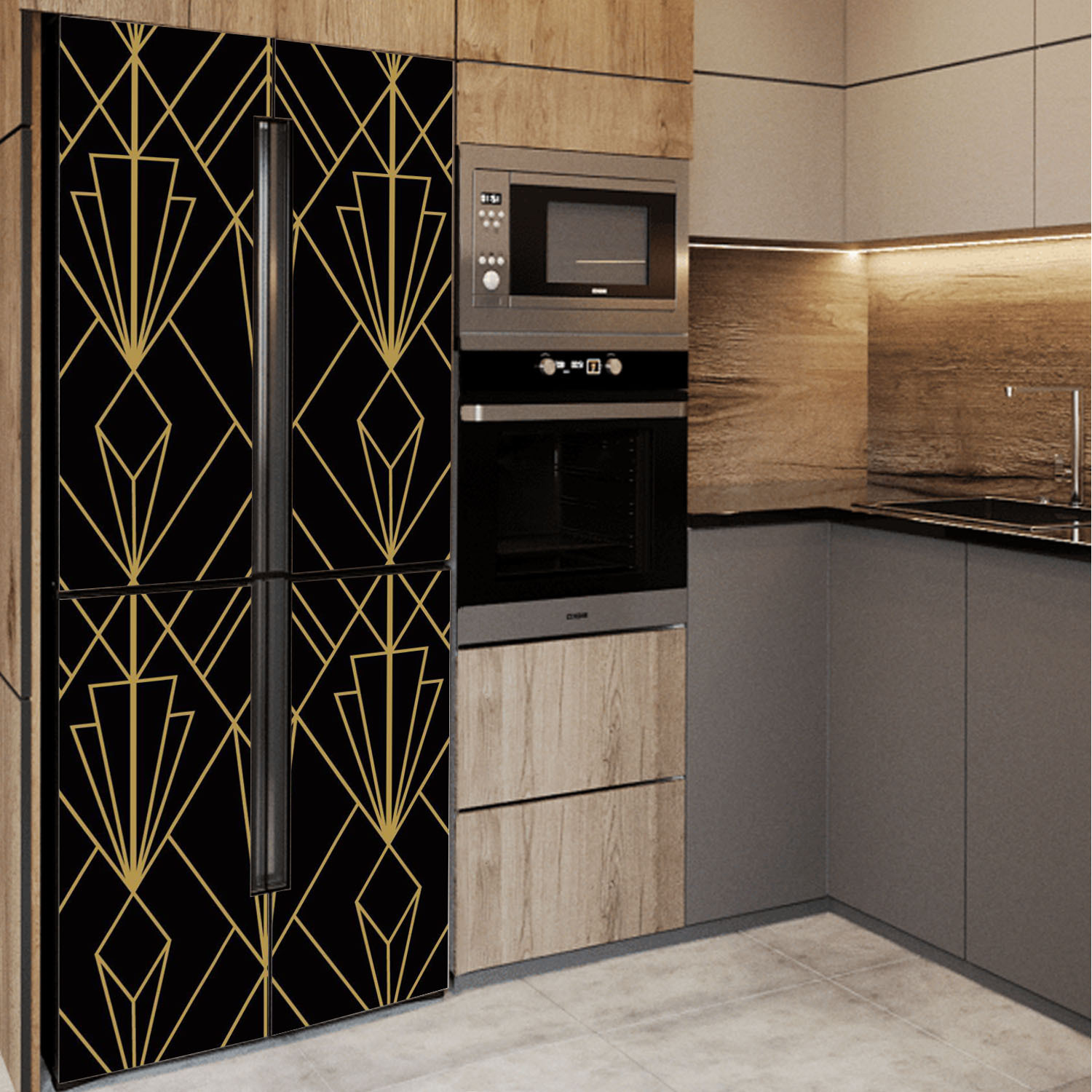 재미 있는 빈티지 블랙 골드 기하학적 양각 냉장고 스티커 냉장고 장식 문 스티커 방수 자기 접착 벽 스티커 RM021