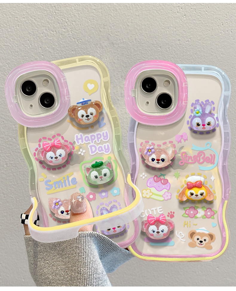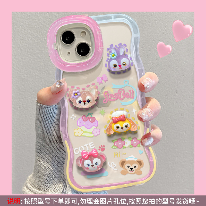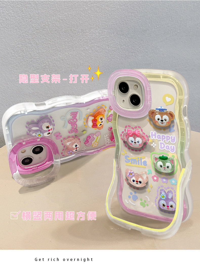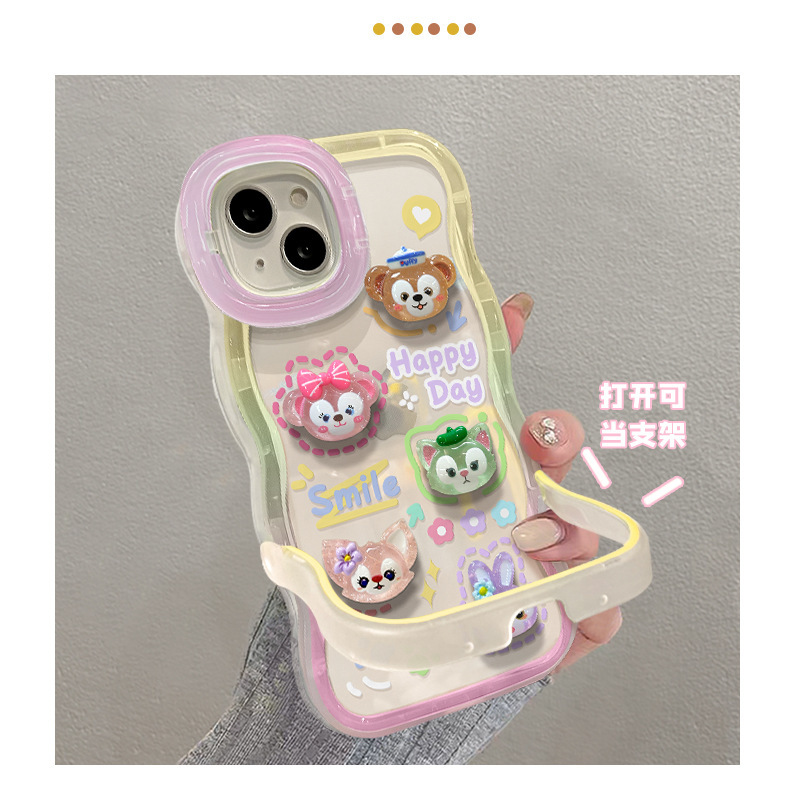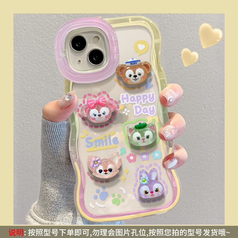 애플 15 휴대 전화 케이스 iPhone13 투명 만화 3 차원 인형 14 웨이브 에지 보이지 않는 더블 브래킷 12