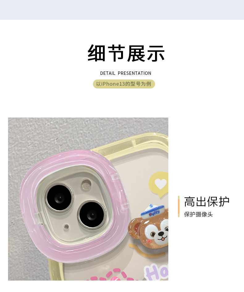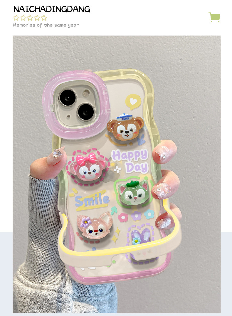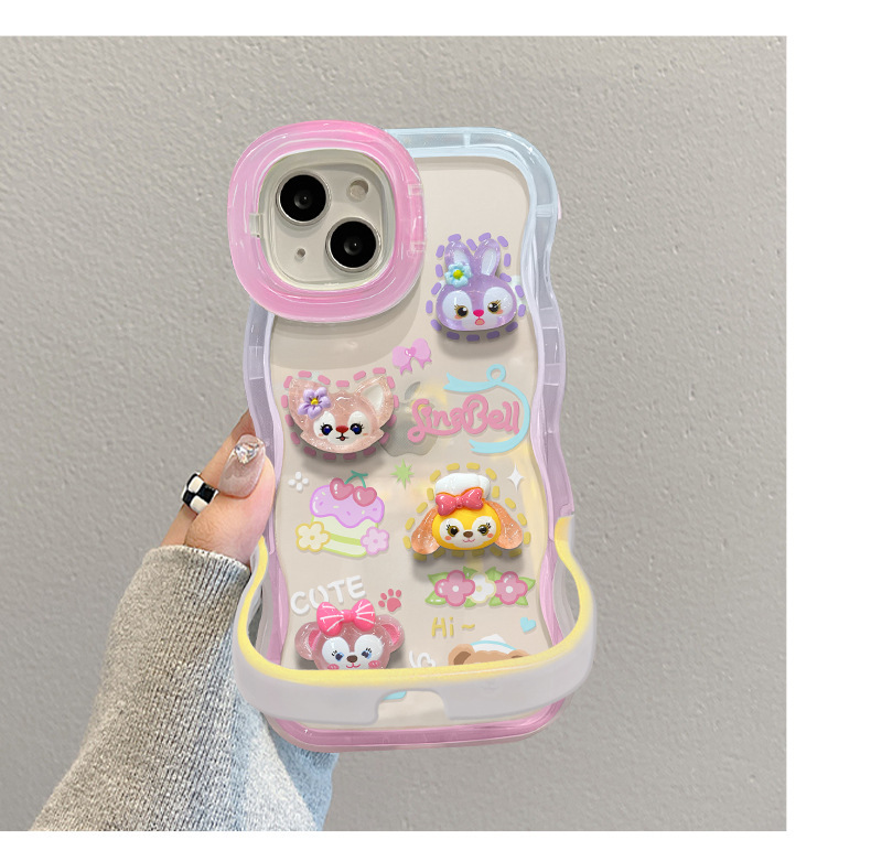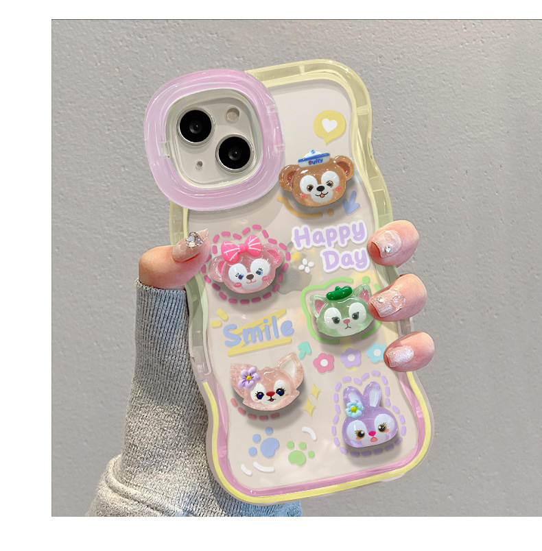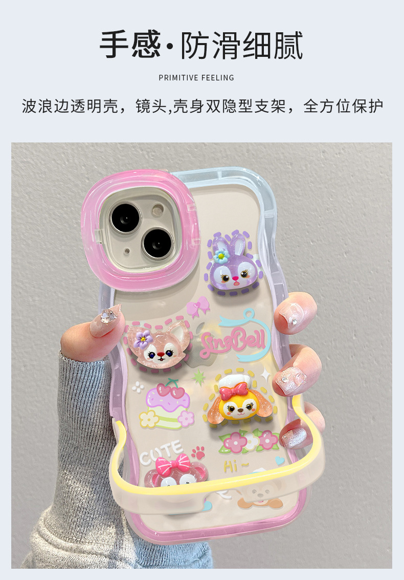 애플 15 휴대 전화 케이스 iPhone13 투명 만화 3 차원 인형 14 웨이브 에지 보이지 않는 더블 브래킷 12