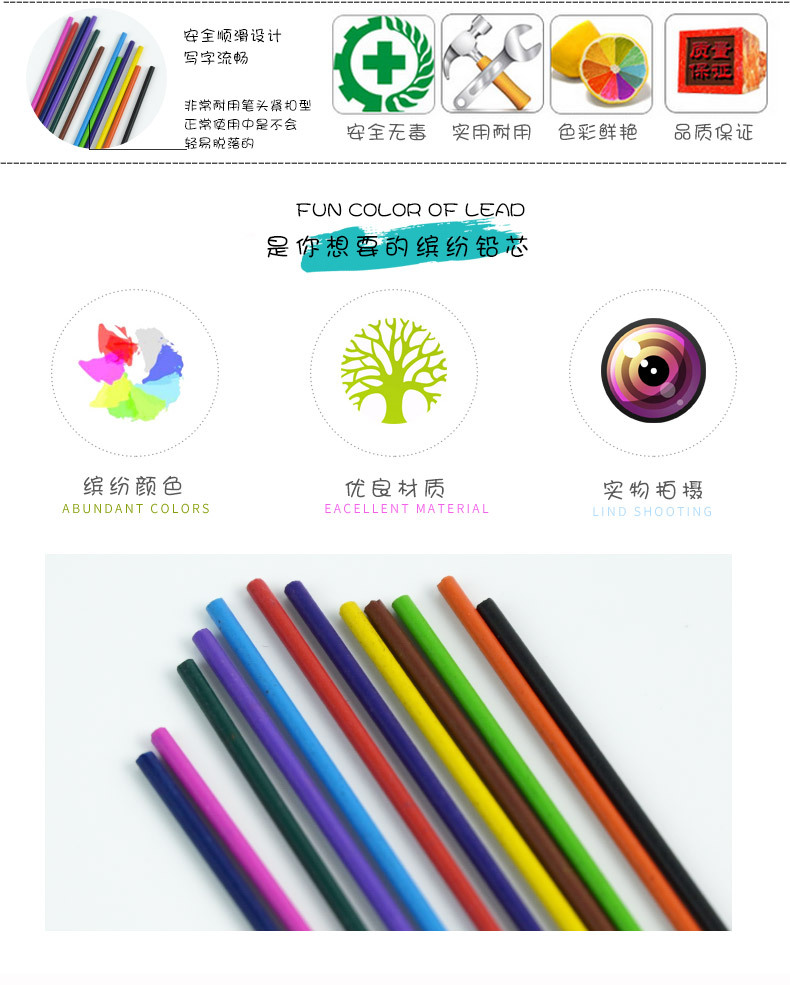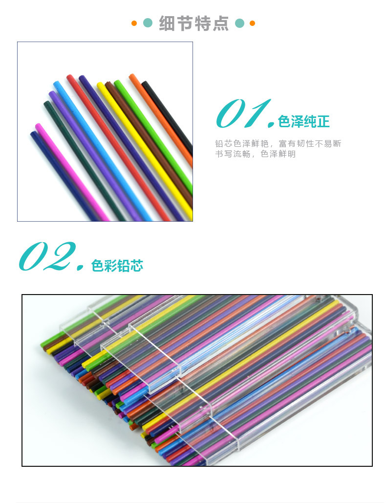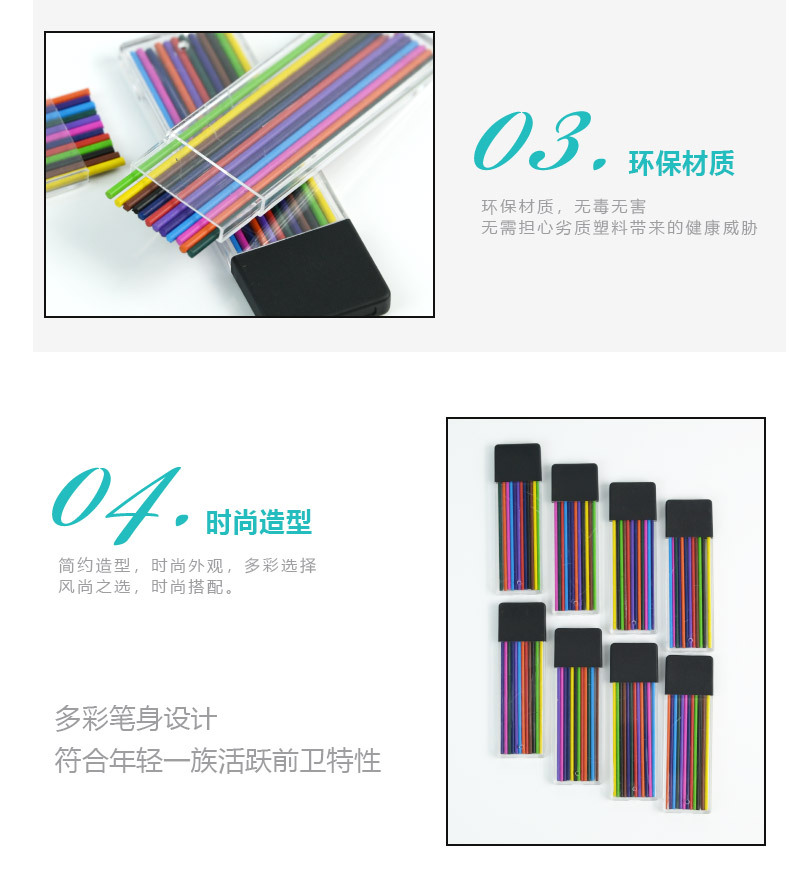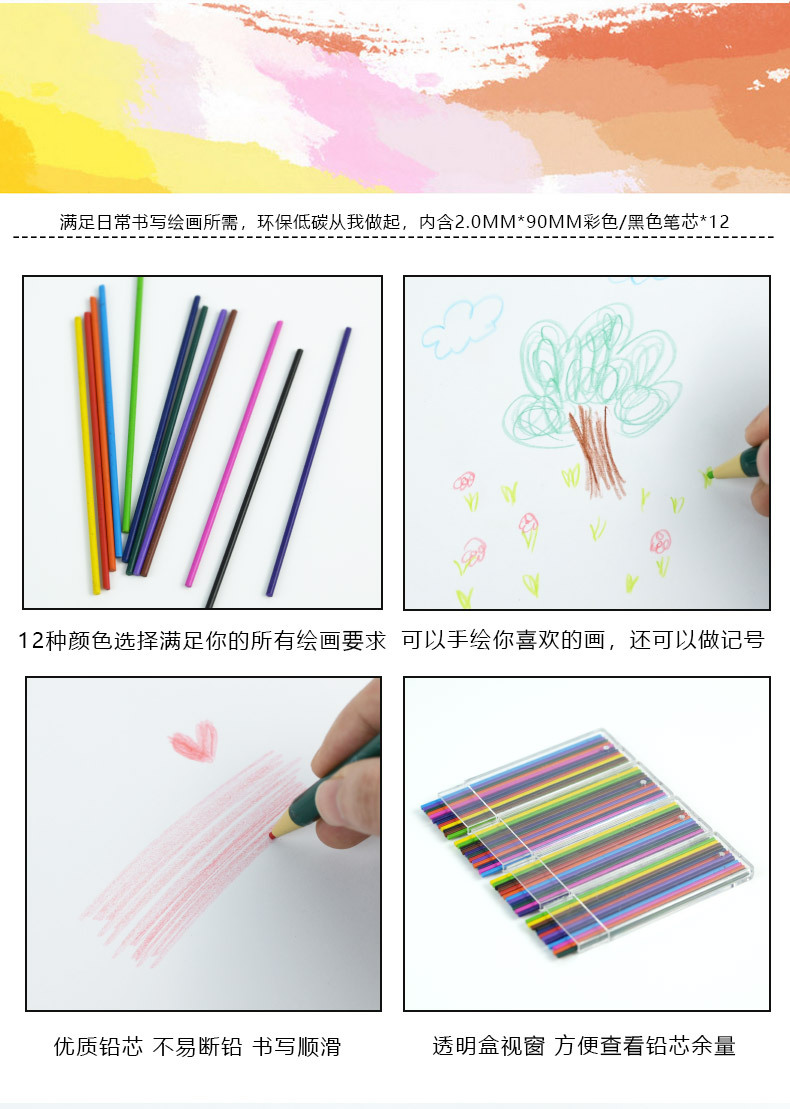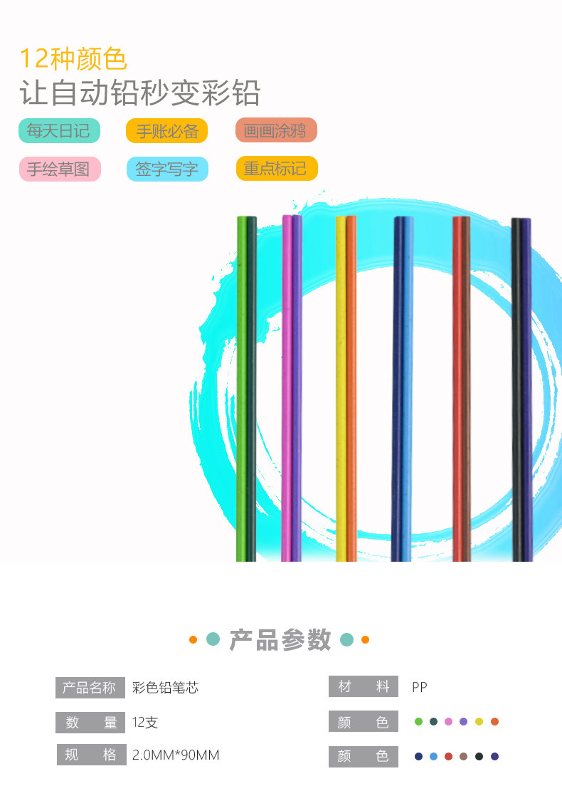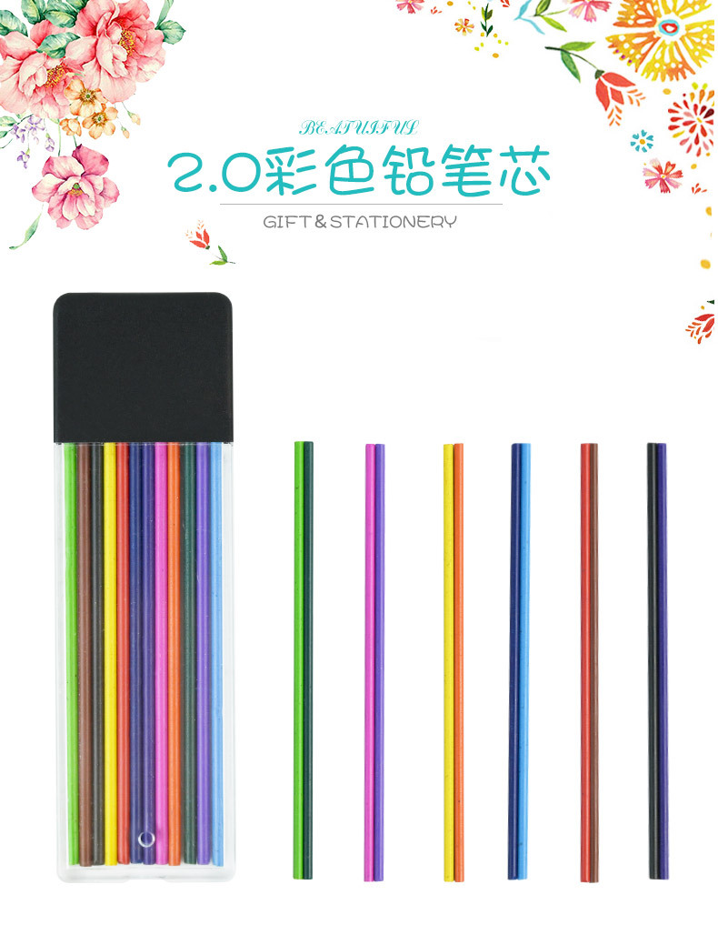2.0mm 컬러 연필 리드 12 색 자동 연필 리드 그림 디자인 지울 수있는 손으로 그린 낙서 예술 스케치