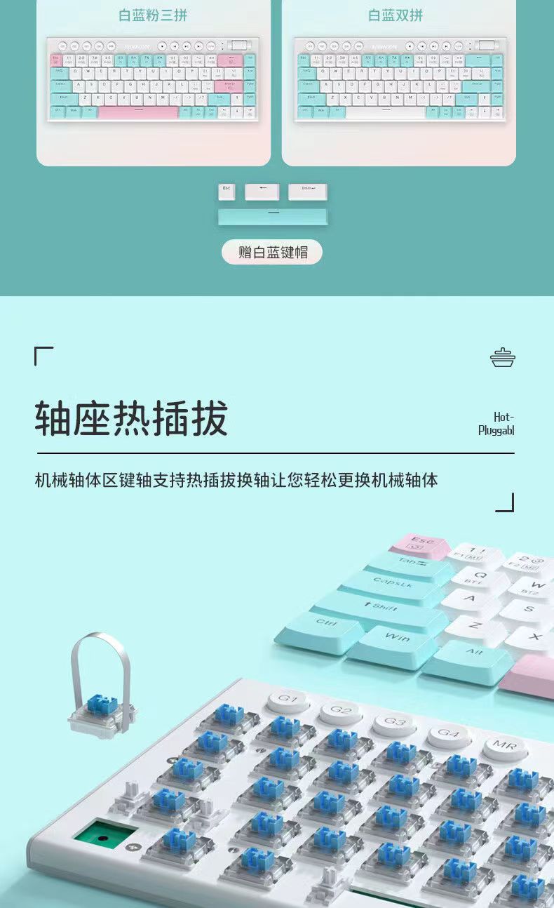 • K609 PRO 화이트 블루 블루 축 무선 3 모드