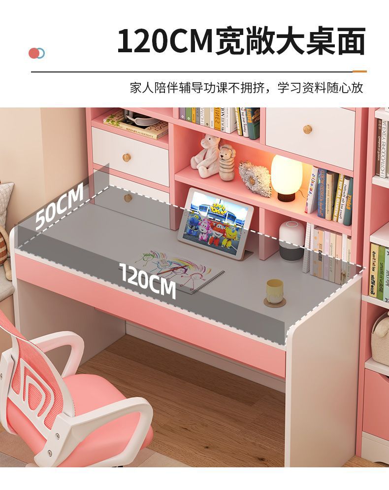 어린이 책상, 책장, 책장, 일체형 학생 학습 책상, 가정용 소녀 침실 컴퓨터 책상 및 의자 세트