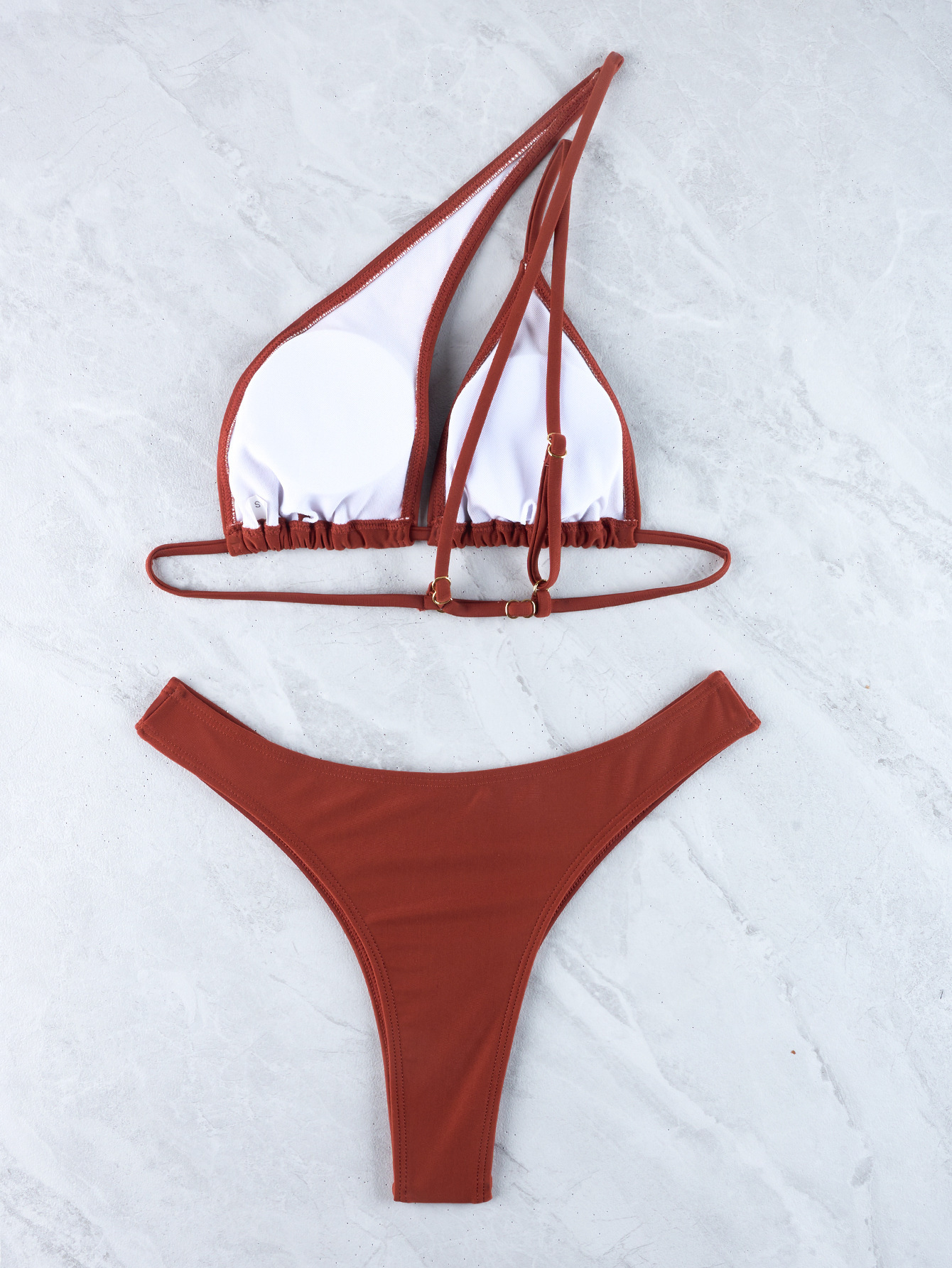섹시한 비키니 수영복 여성용 드로우 스트링 크로스 숄더 칼라 라인 인쇄 빠른 건조 유럽과 미국의 대외 무역 국경 수영복