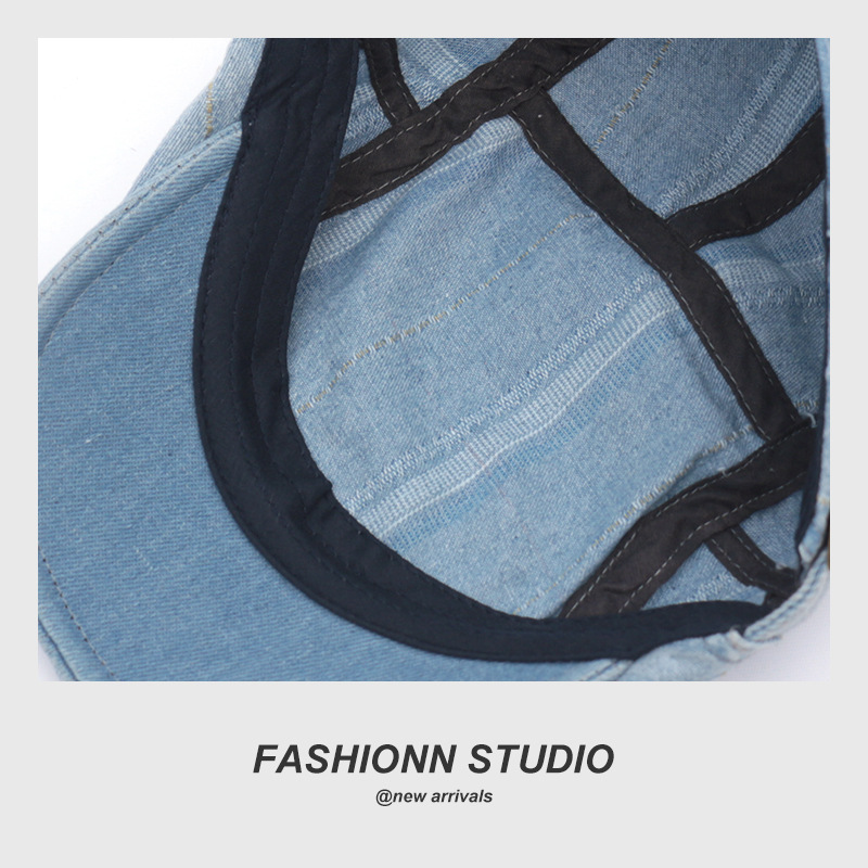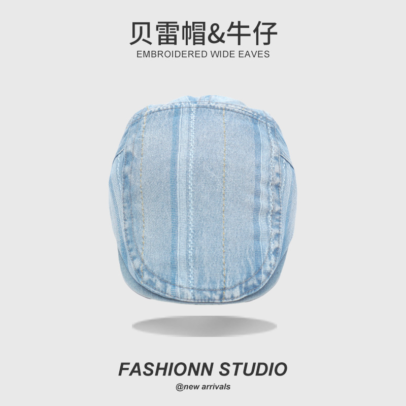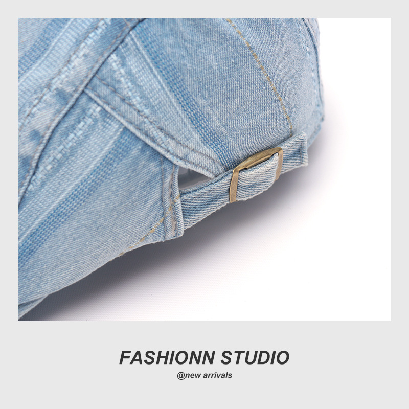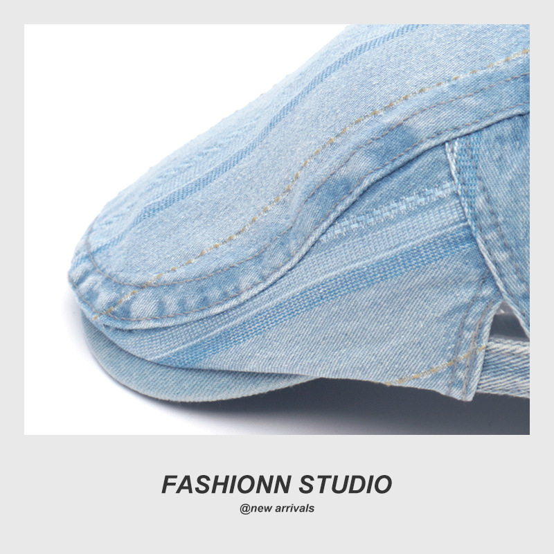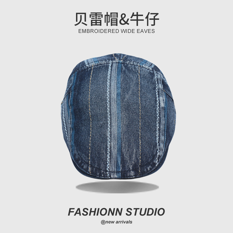 빈티지 씻은 데님 베레 남성과 여성의 거리 성격 추세 영국 스트라이프 포워드 캡스토어 가기