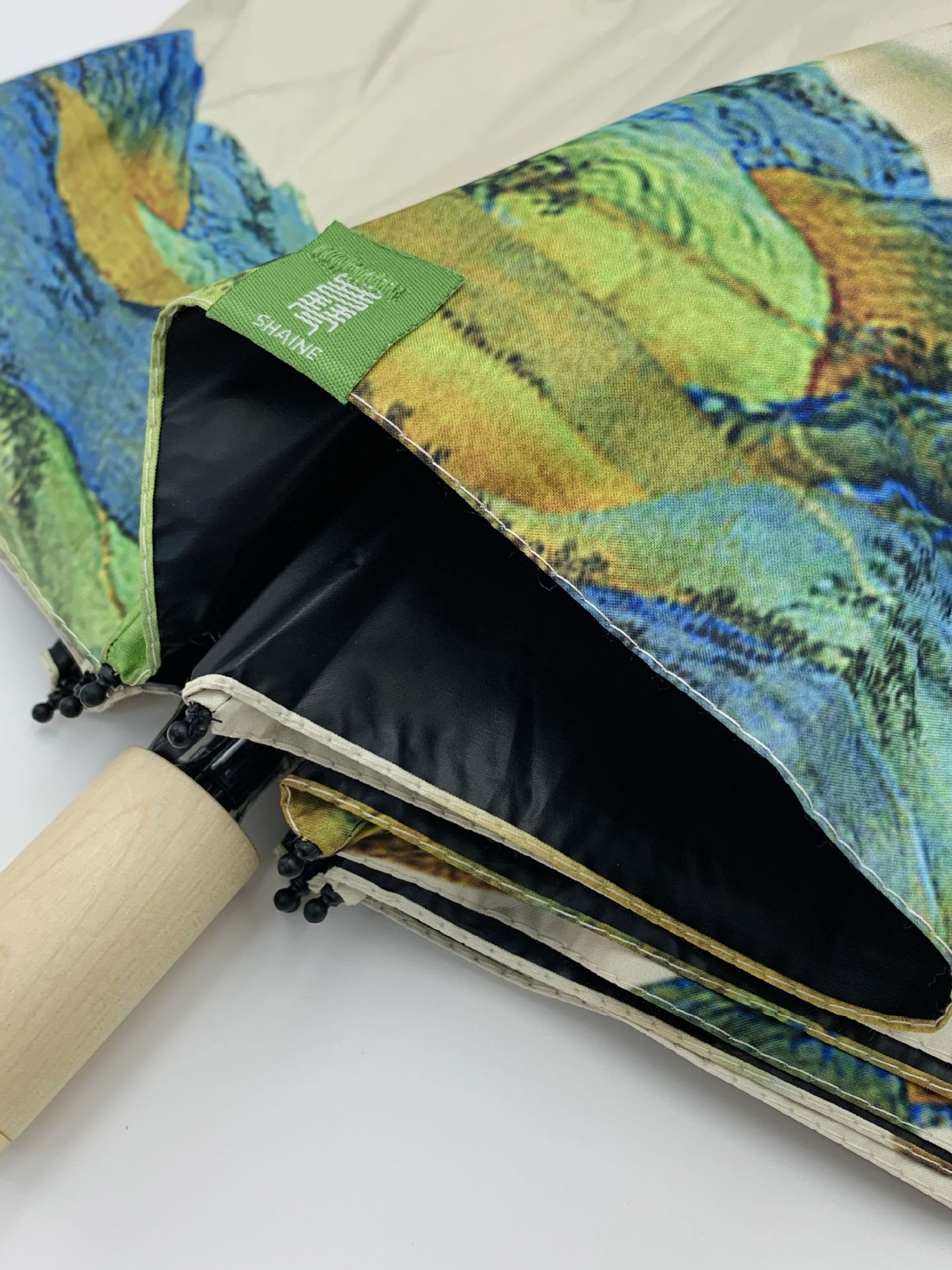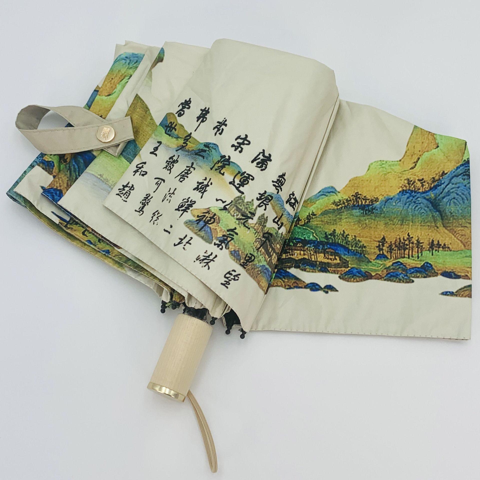 【千里江山图】고풍스러운 우산 나무 손잡이 수동 8단 블랙 글로시 우산 고급스러운 디자인 자외선 차단 우산