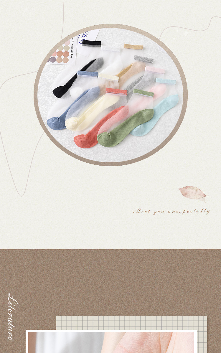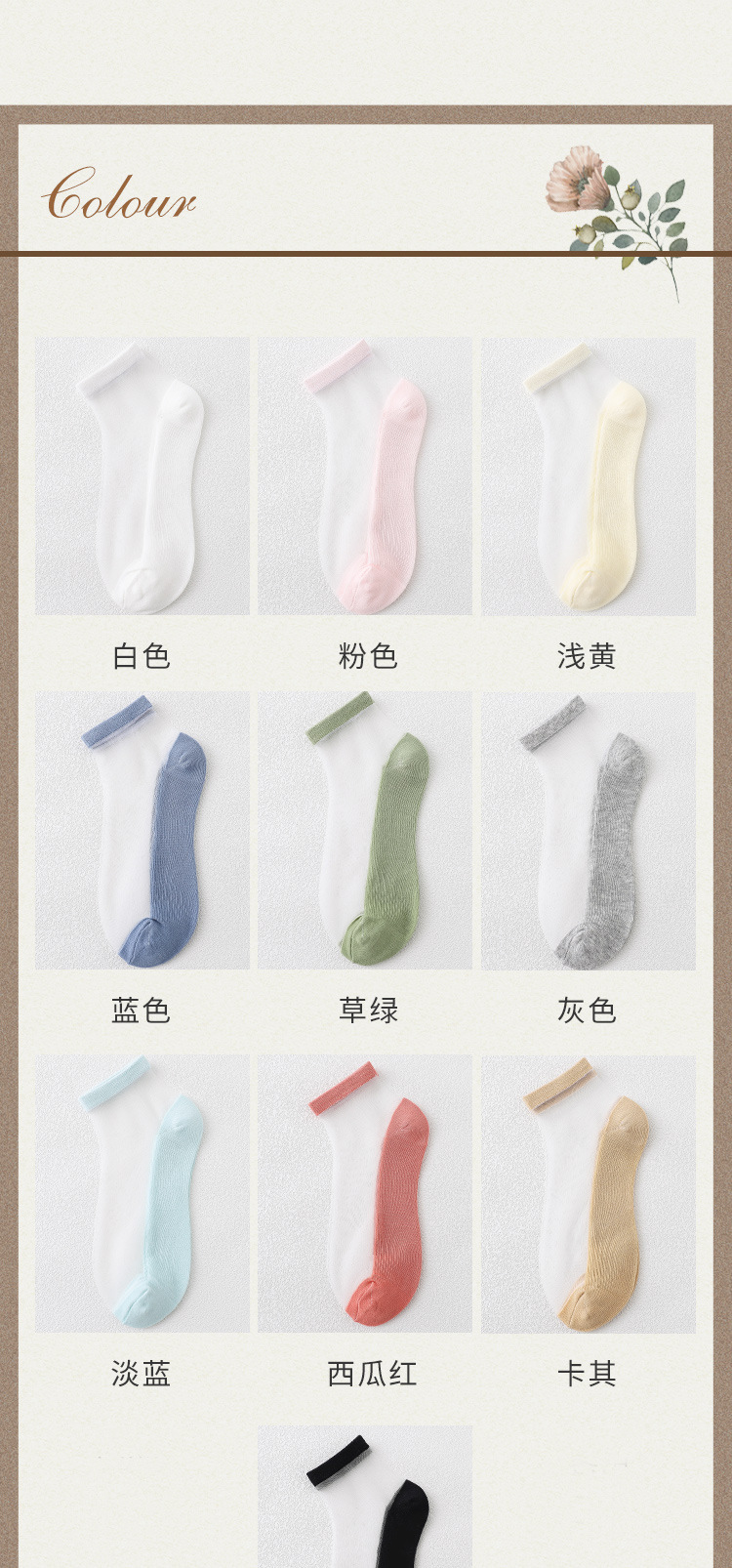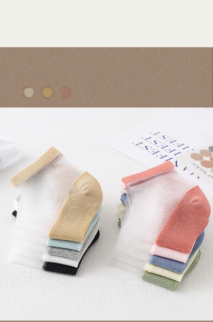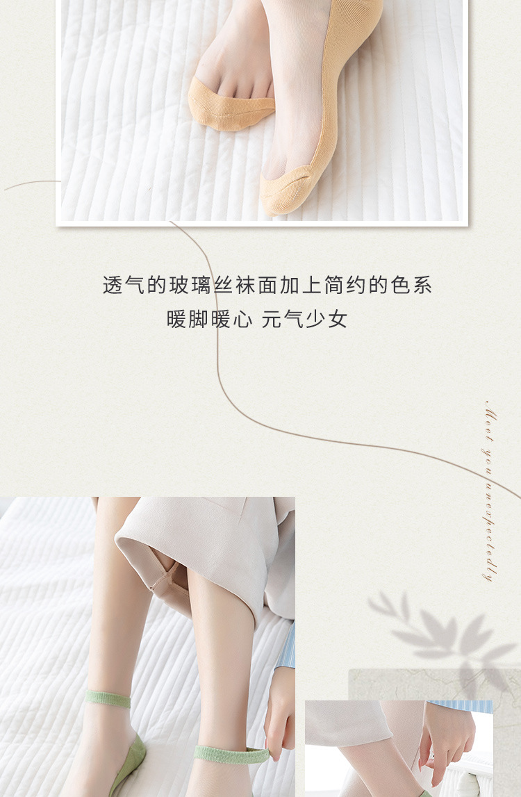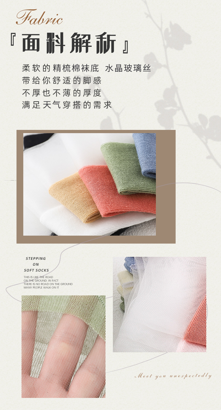 양말 여성의 여름 얇은 통기성 얕은 양말 크리스탈 유리 실크 스타킹 면 하단 낮은 단색 인터넷 기념 학생 양말