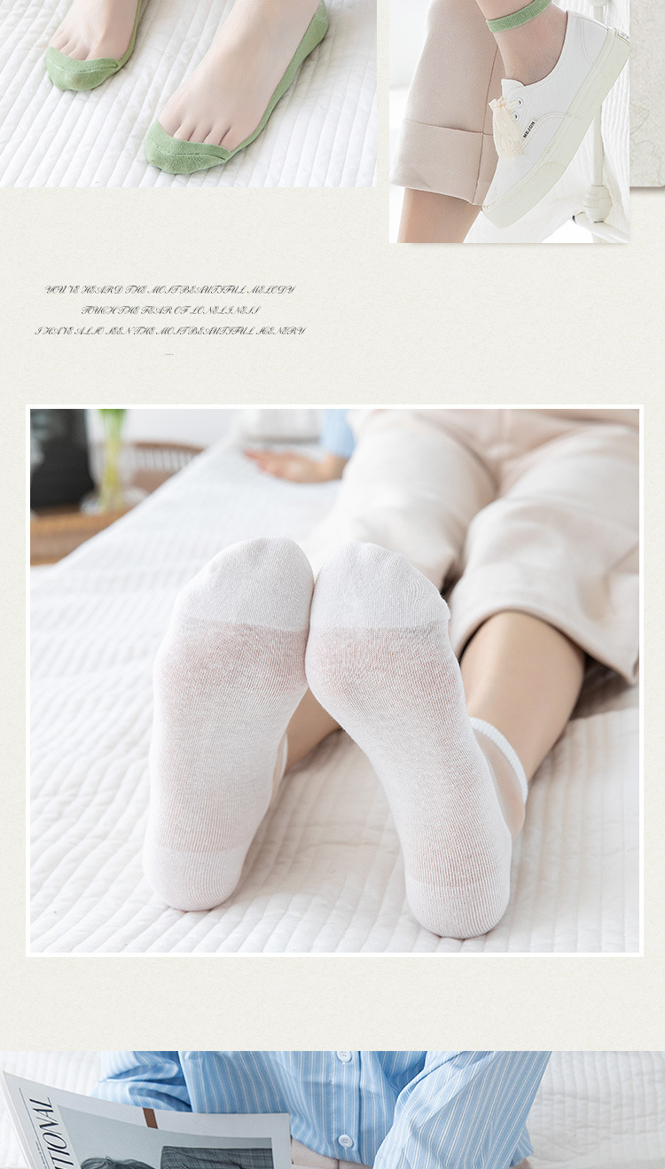 양말 여성의 여름 얇은 통기성 얕은 양말 크리스탈 유리 실크 스타킹 면 하단 낮은 단색 인터넷 기념 학생 양말스토어 가기
