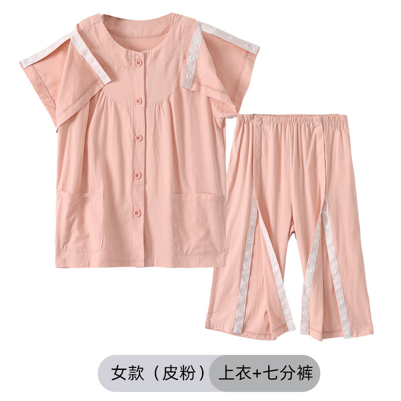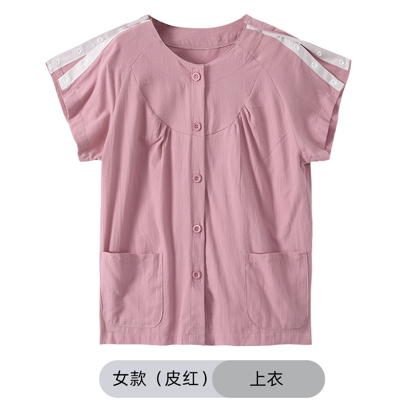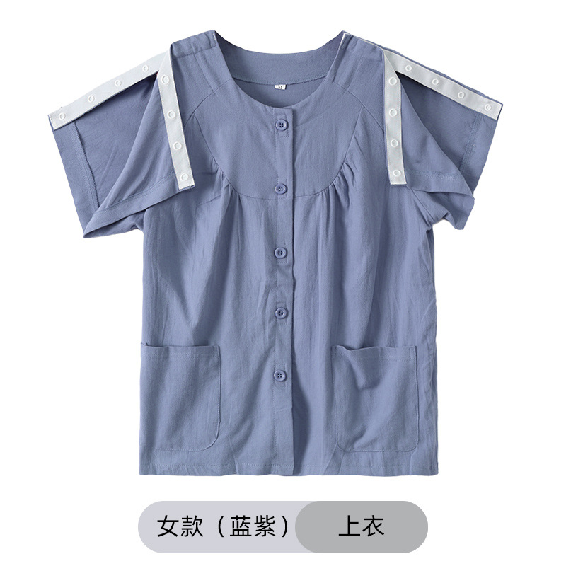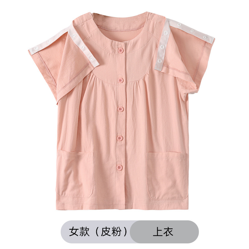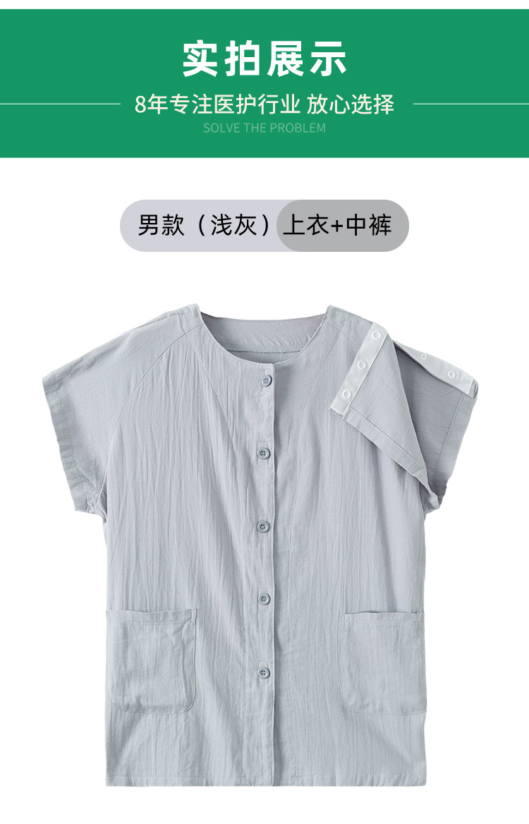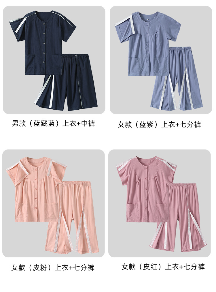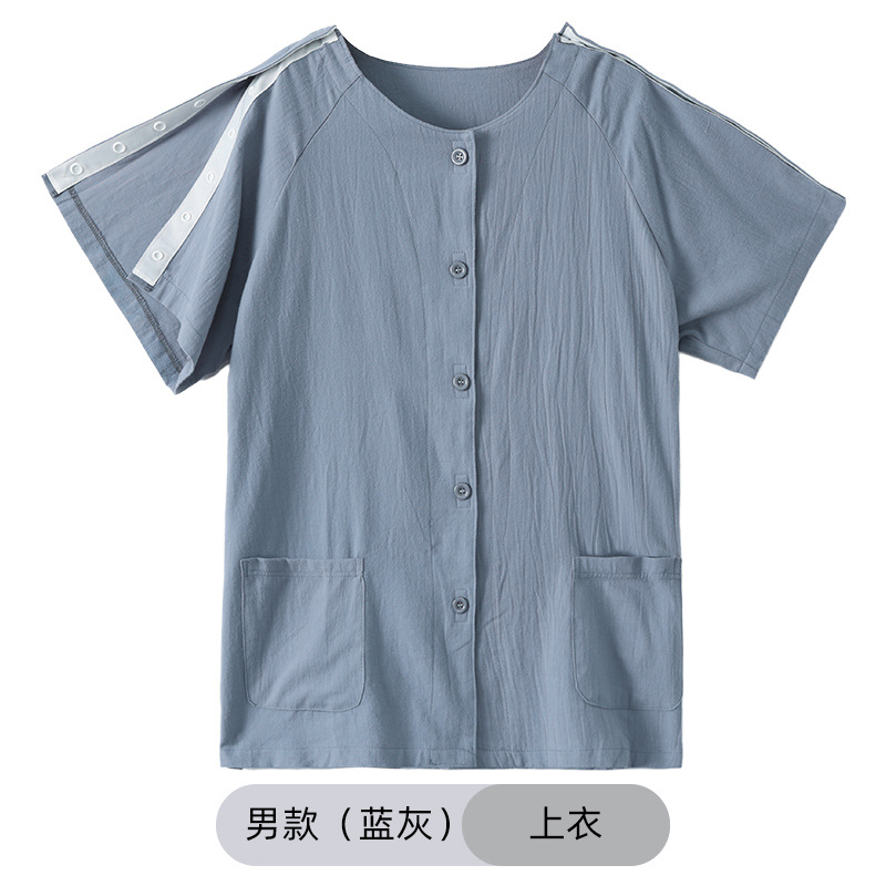 여름 환자 치료복 반팔 골절 침대 타기 수술 후 재활 병원 가운은 모두 착용하고 벗기 쉬운 면화스토어 가기