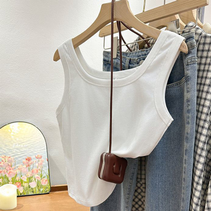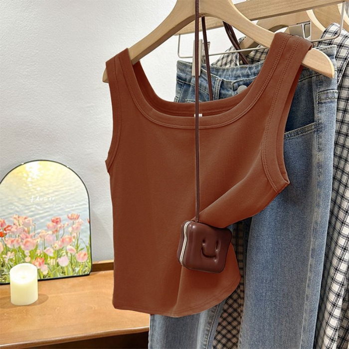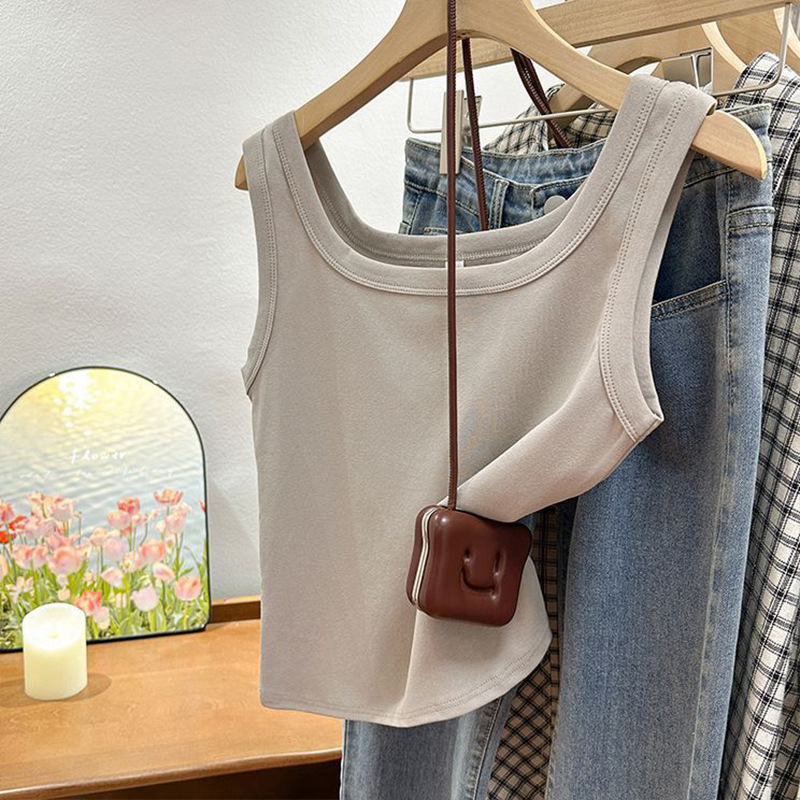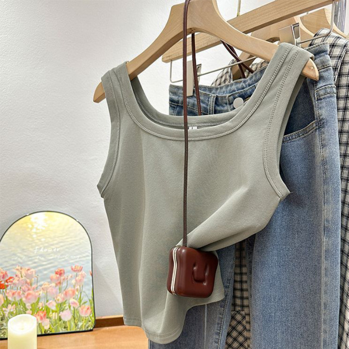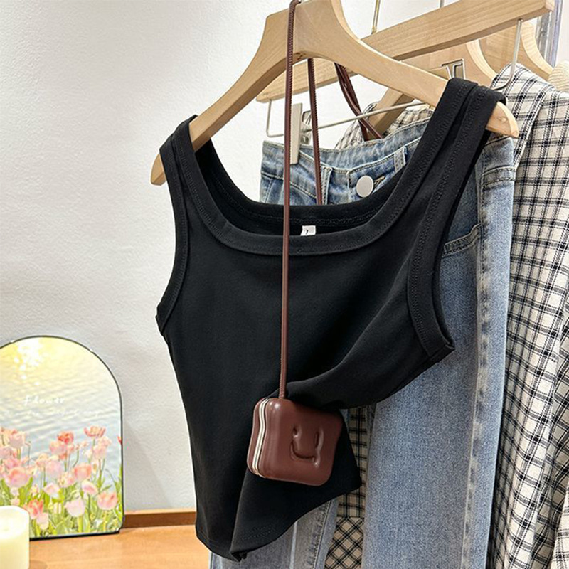 MO19 # 스퀘어 넥 작은 카미 솔 조끼 여성 여름 착용 솔리드 컬러 보텀 슬림 핏 민소매 올 매치 탑스토어 가기