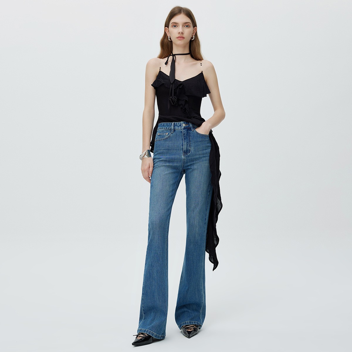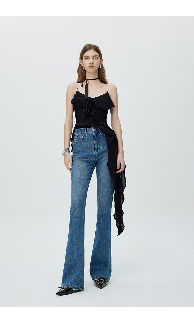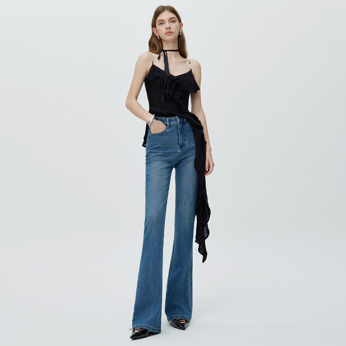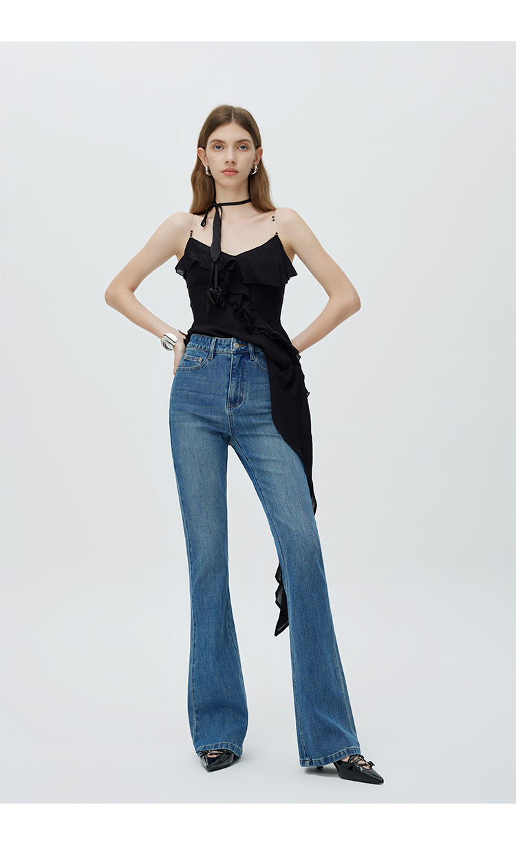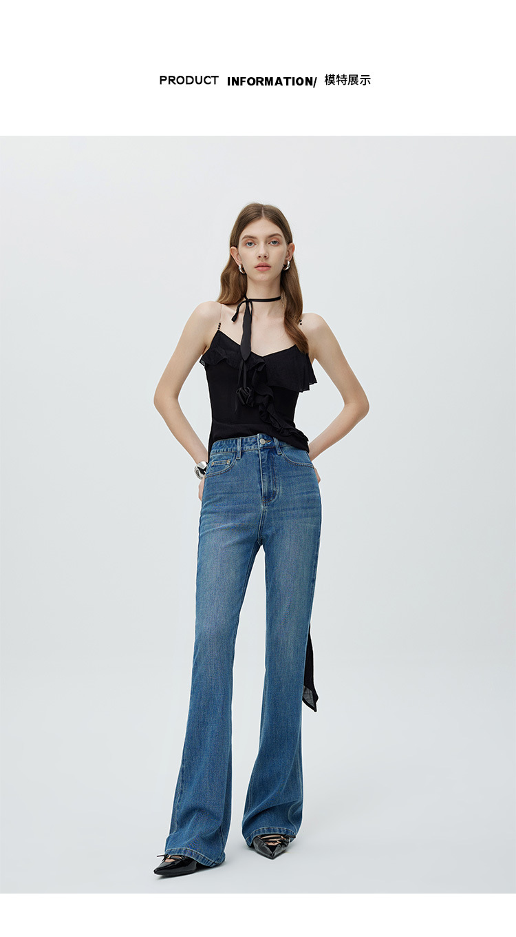 고급 2025 가을 겨울 신상 벨벳 코튼 신축성 마이크로 플레어 스트레치 데님 팬츠 여성 슬림핏 다용도 슬림 롱 팬츠 트렌디스토어 가기
