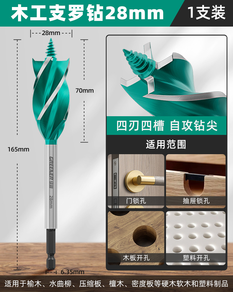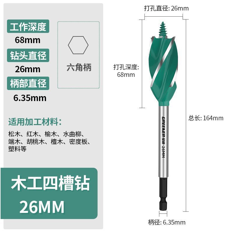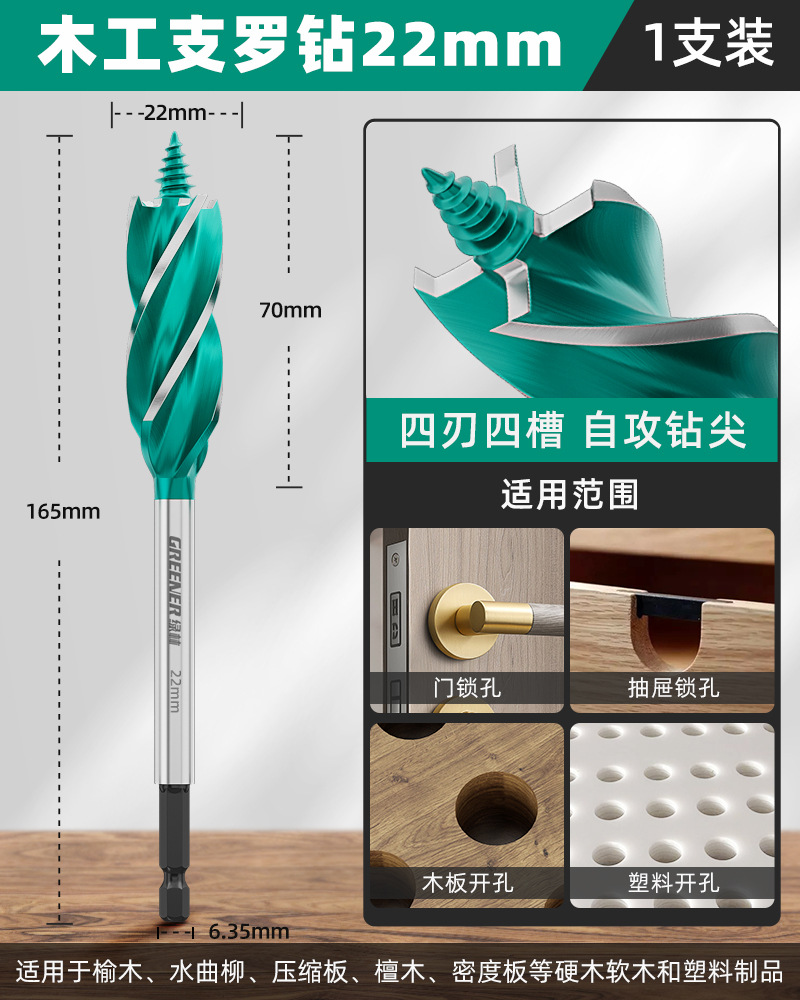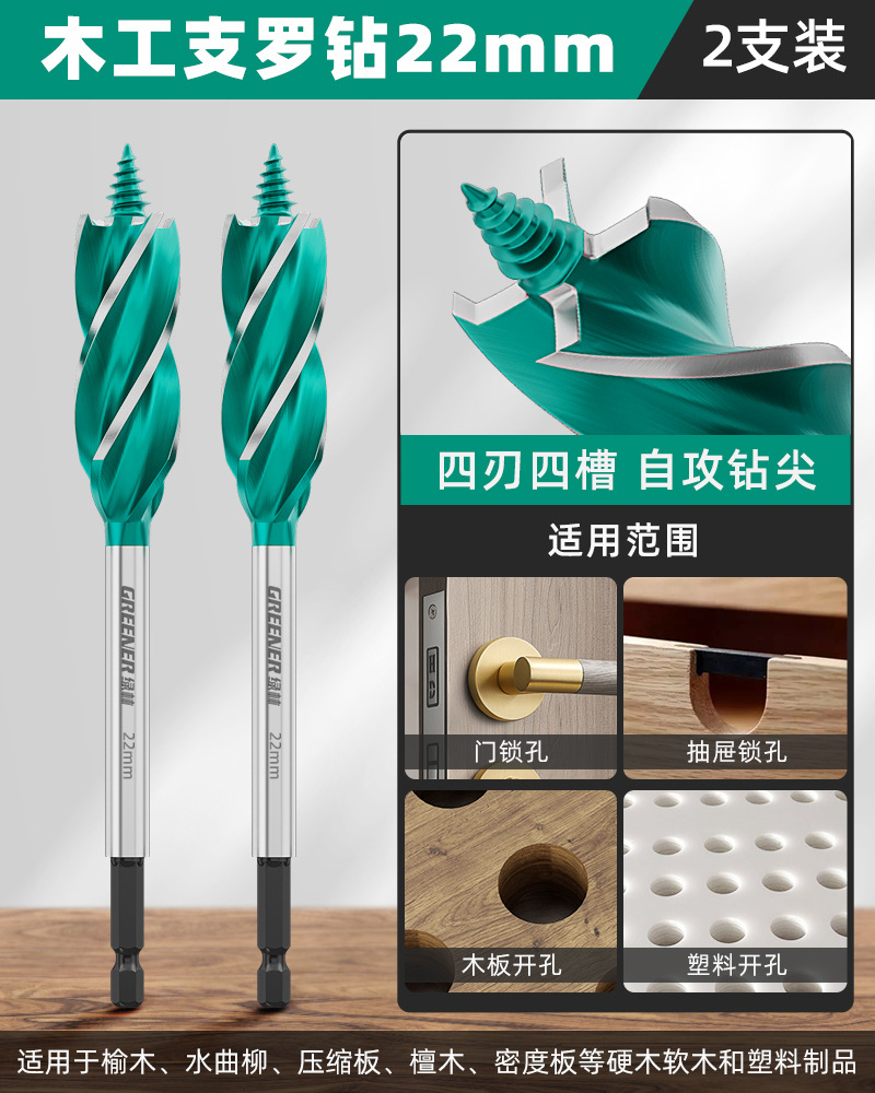 그린 우드 목공 분지 드릴 트위스트 드릴 드릴링 나무 도어 잠금 구멍 특수 아티팩트 도구 완전한 책스토어 가기