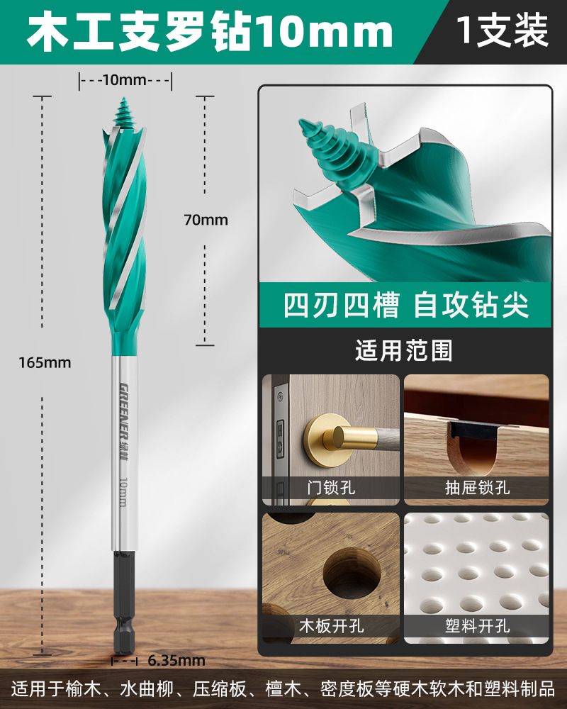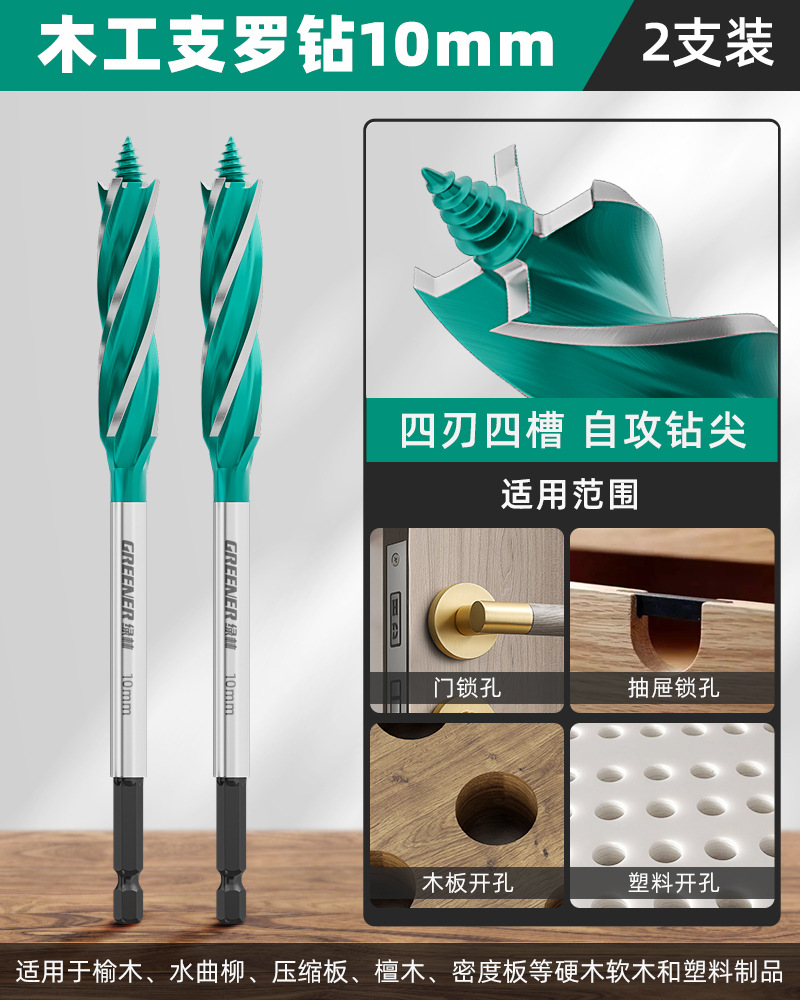 그린 우드 목공 분지 드릴 트위스트 드릴 드릴링 나무 도어 잠금 구멍 특수 아티팩트 도구 완전한 책