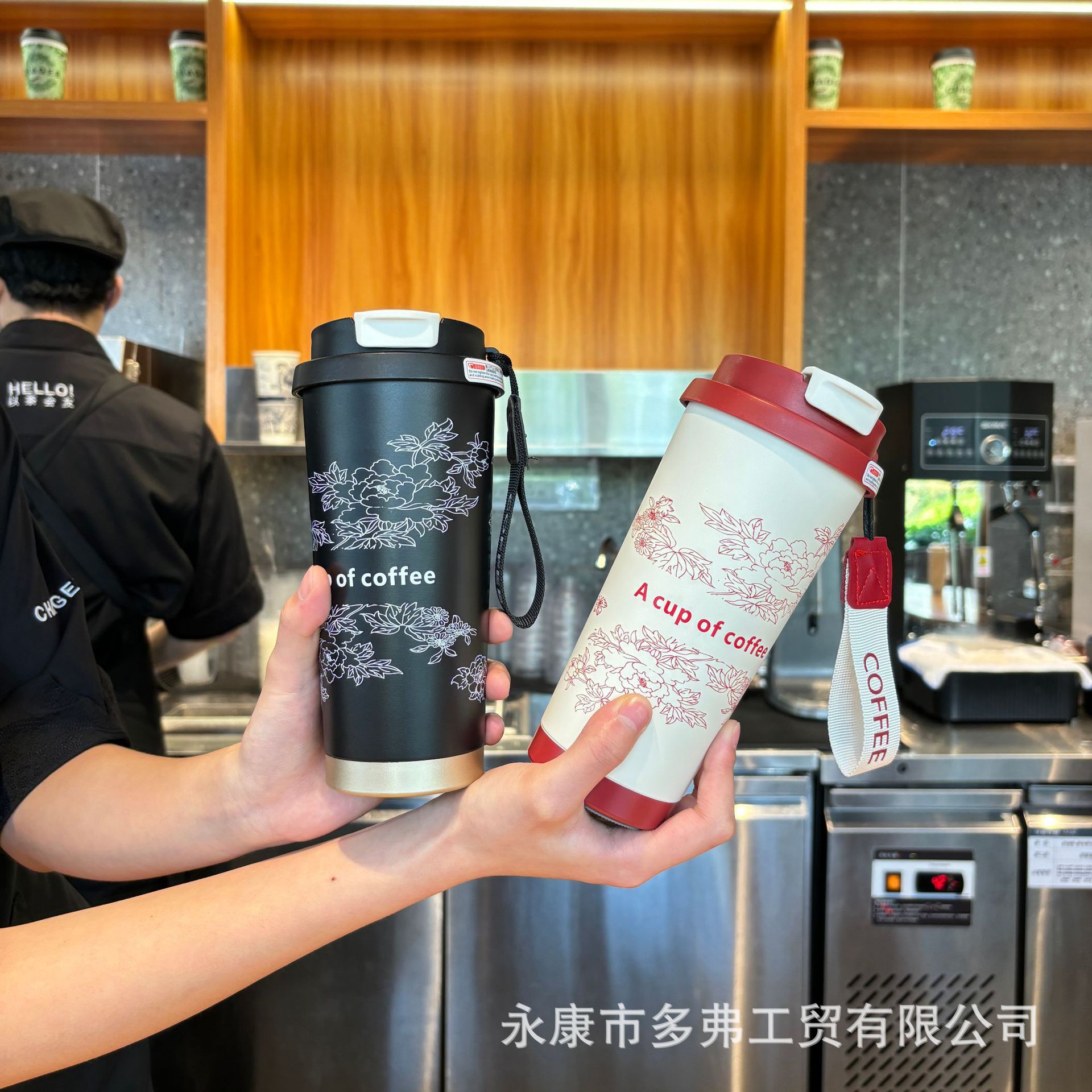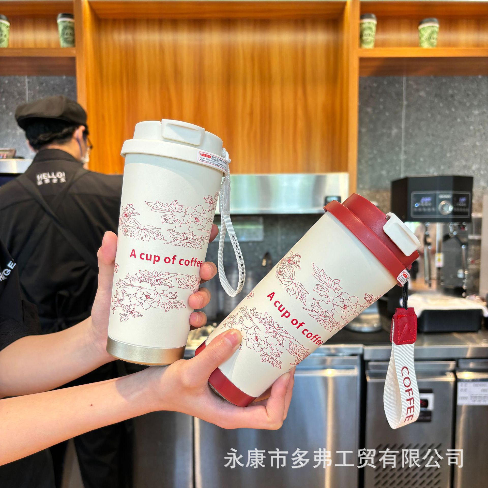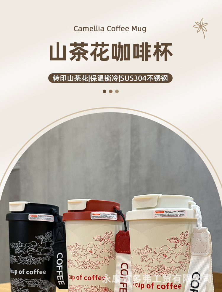 높은 색상 값 간단한 스테인레스 스틸 동백 커피 컵 단열재 차가운 빨대 두 배 마시는 컵 남성과 여성의 자동차 동반 컵스토어 가기