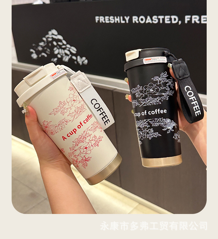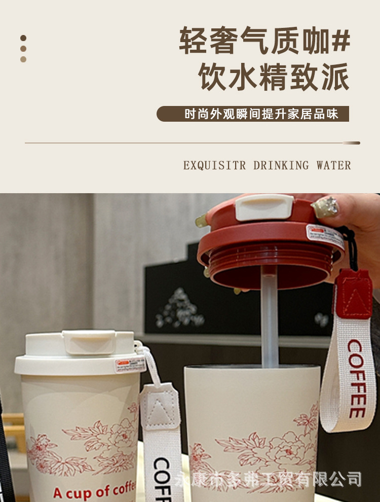 높은 색상 값 간단한 스테인레스 스틸 동백 커피 컵 단열재 차가운 빨대 두 배 마시는 컵 남성과 여성의 자동차 동반 컵