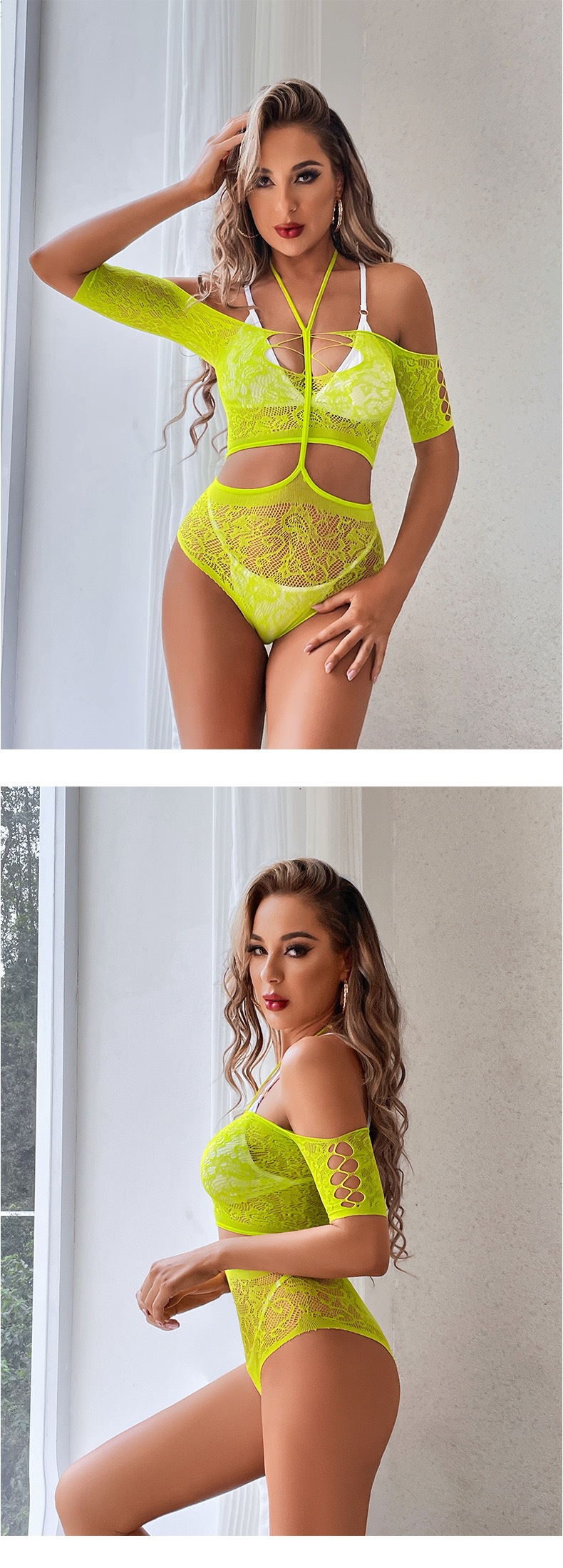 유럽과 미국의 섹시한 뜨거운 란제리 상하 스플릿 비키니 세트 낚시 그물 할로우 넥 교수형 꽃 매력 양말스토어 가기