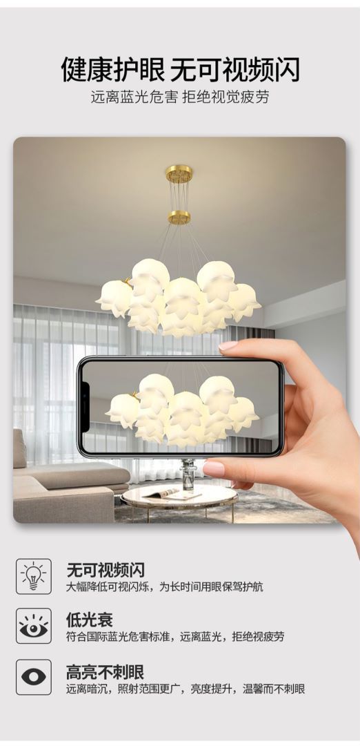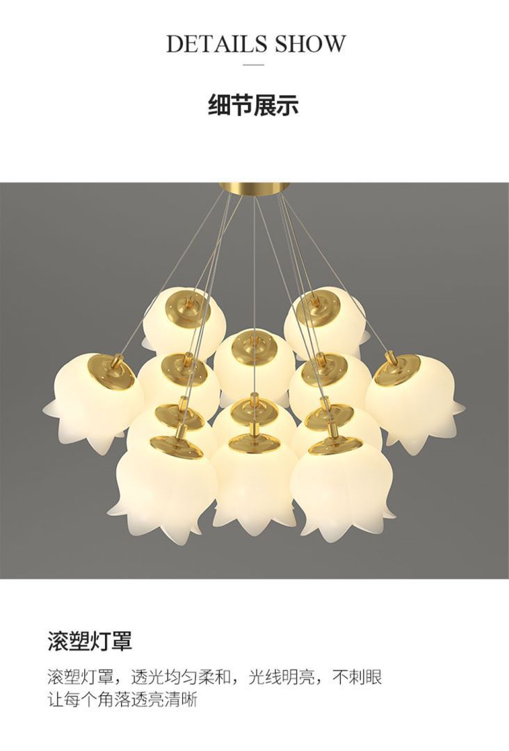 모든 구리 프랑스 아메리칸 스타일 크림 스타일 릴리 오브 더 밸리 플라워 침실 샹들리에 클로크룸 거실 다이닝 룸 간단한 빈티지 램프