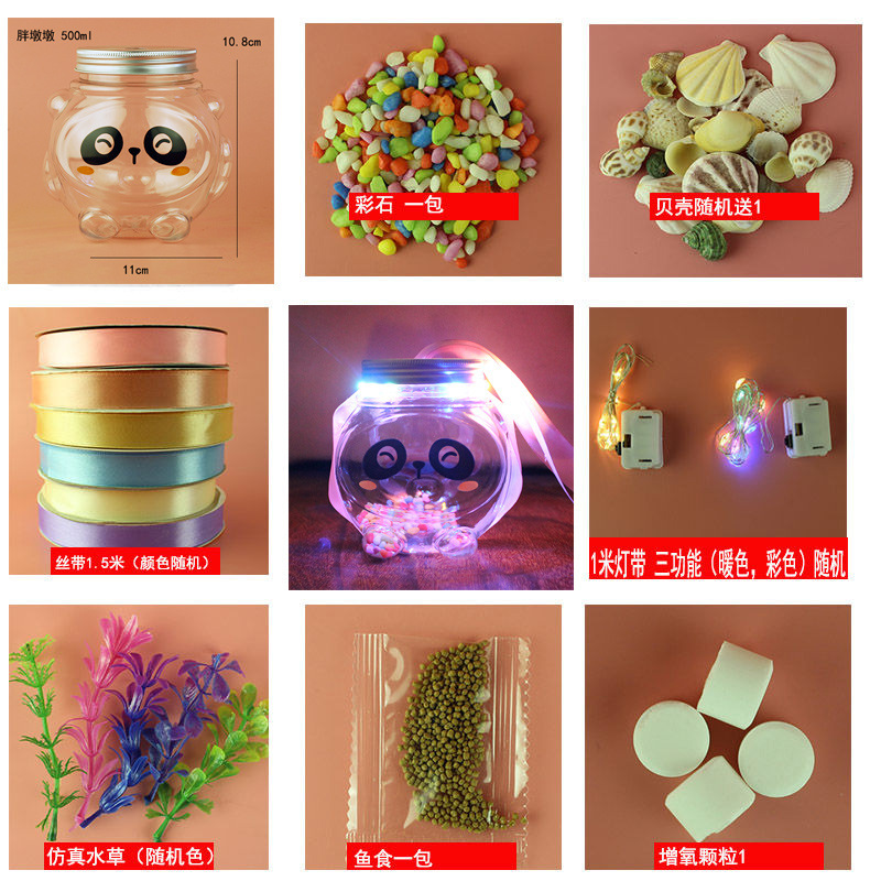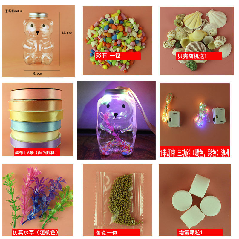 • 귀여운 곰 + 램프 + 컬러 스톤 + 수생 식물 + 리본 + 산소 공급