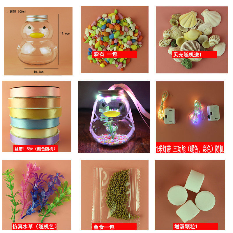 • 작은 노란 오리 + 램프 + 컬러 스톤 + 수생 식물 + 리본 + 산소 공급