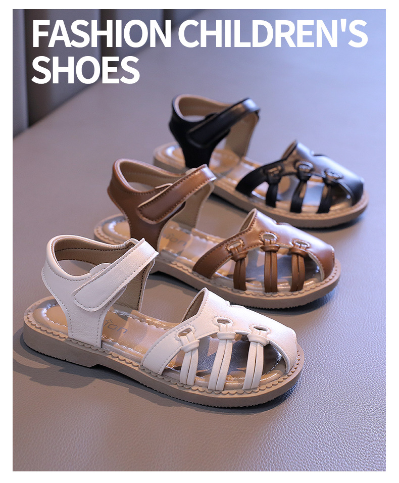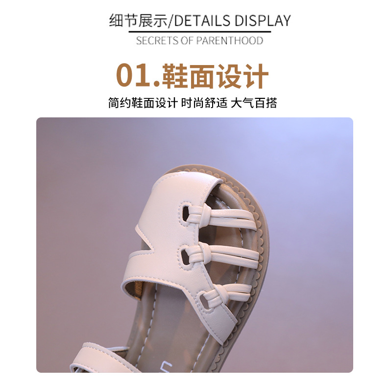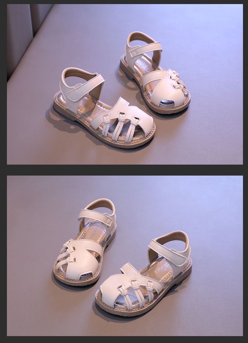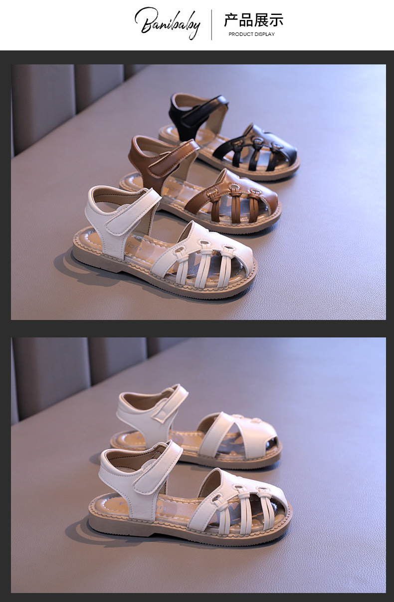 어린이 신발 소녀 샌들 2024 새 여름 어린 소녀의 바오터우 짠 로마 신발 대형 어린이 부드러운 밑창 비치 신발스토어 가기