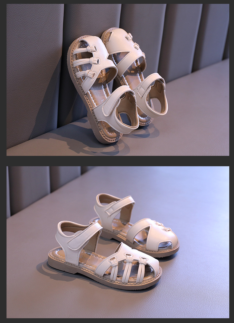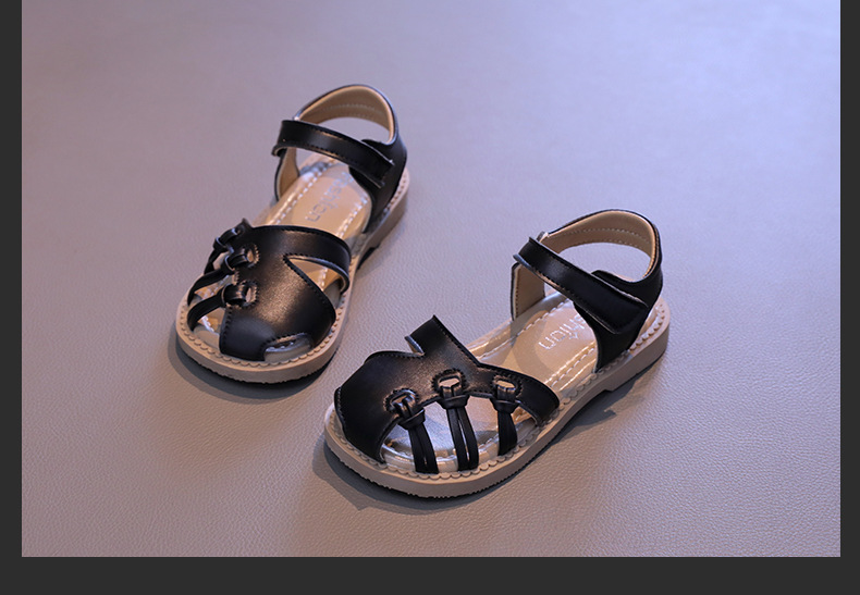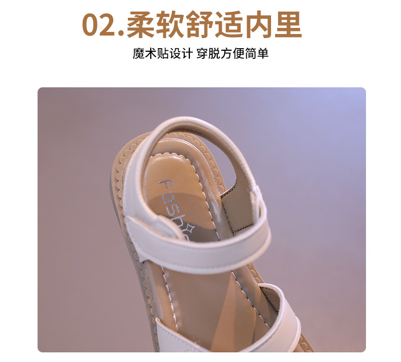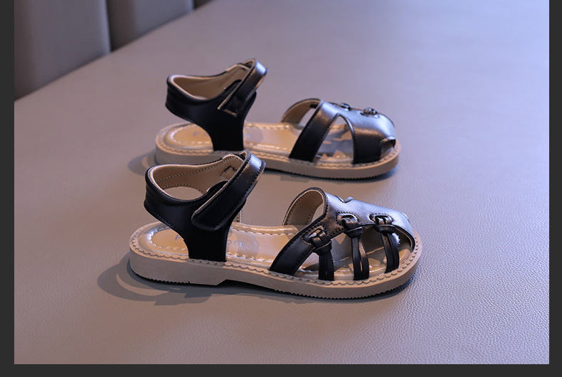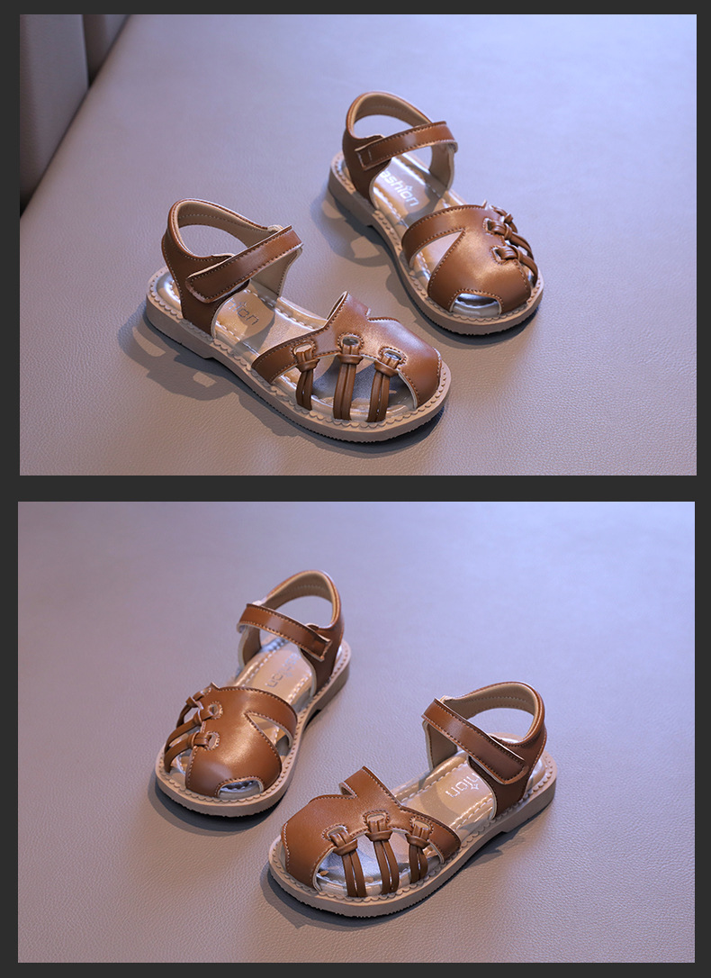 어린이 신발 소녀 샌들 2024 새 여름 어린 소녀의 바오터우 짠 로마 신발 대형 어린이 부드러운 밑창 비치 신발스토어 가기