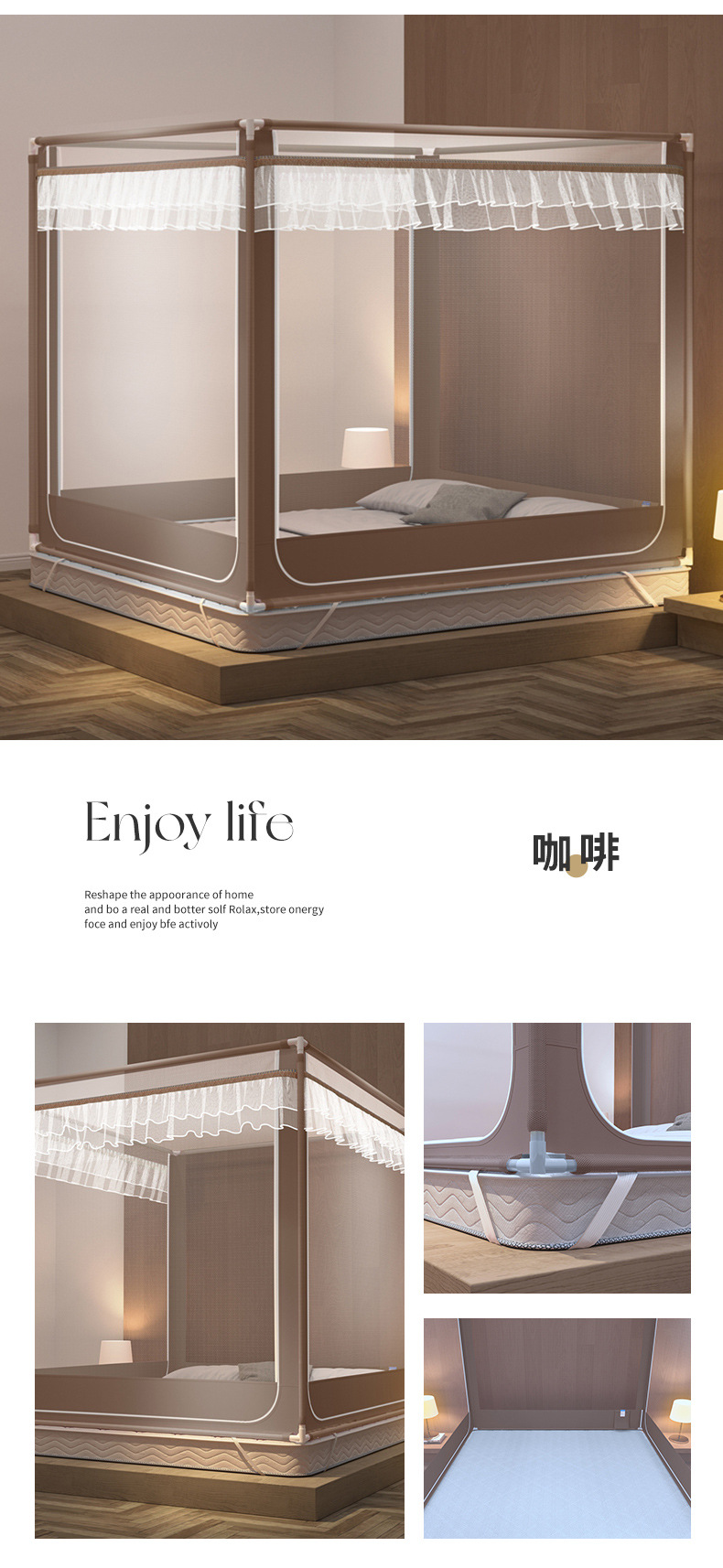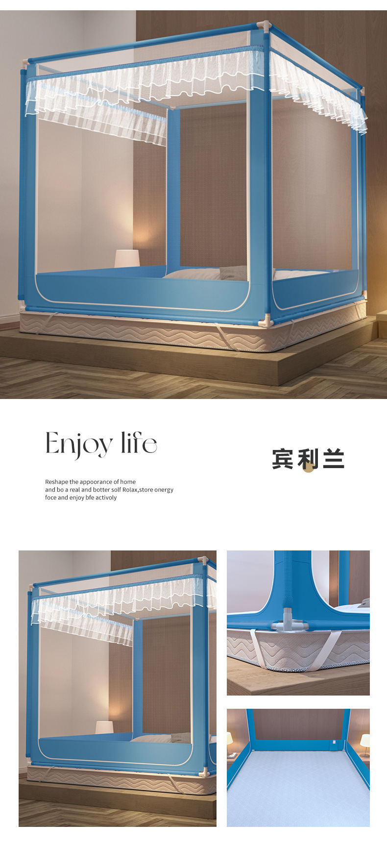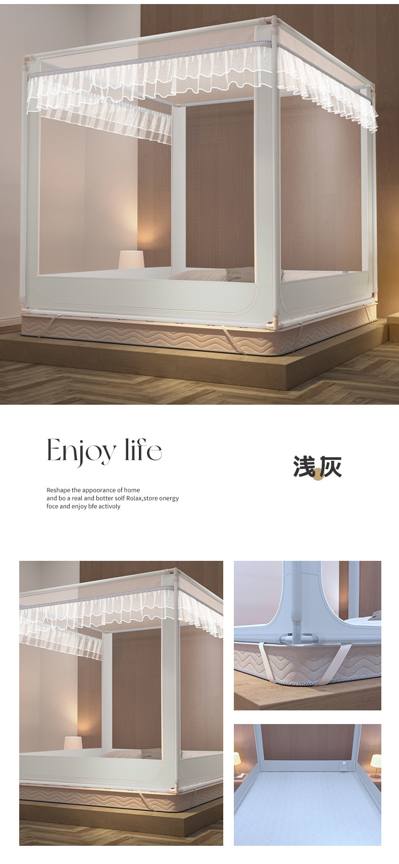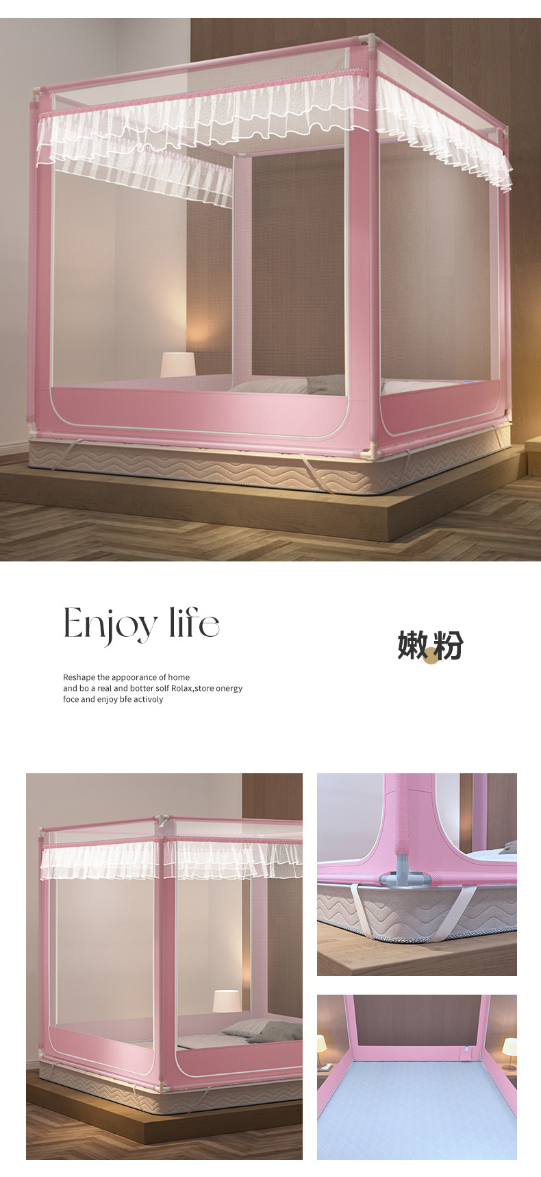 2024 새로운 고급 유르트 항균 낙하 모기장 가정용 침실 설치 무료 어린이 유아 모든 포함 바닥