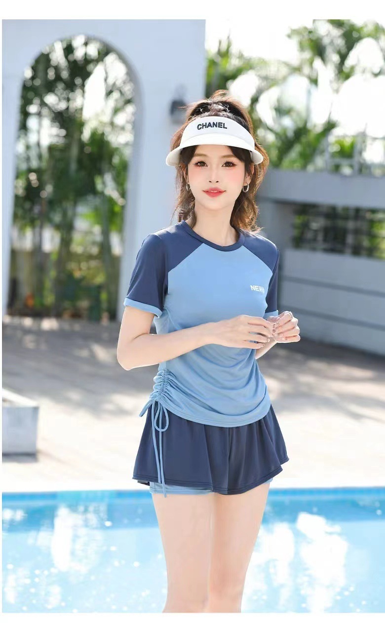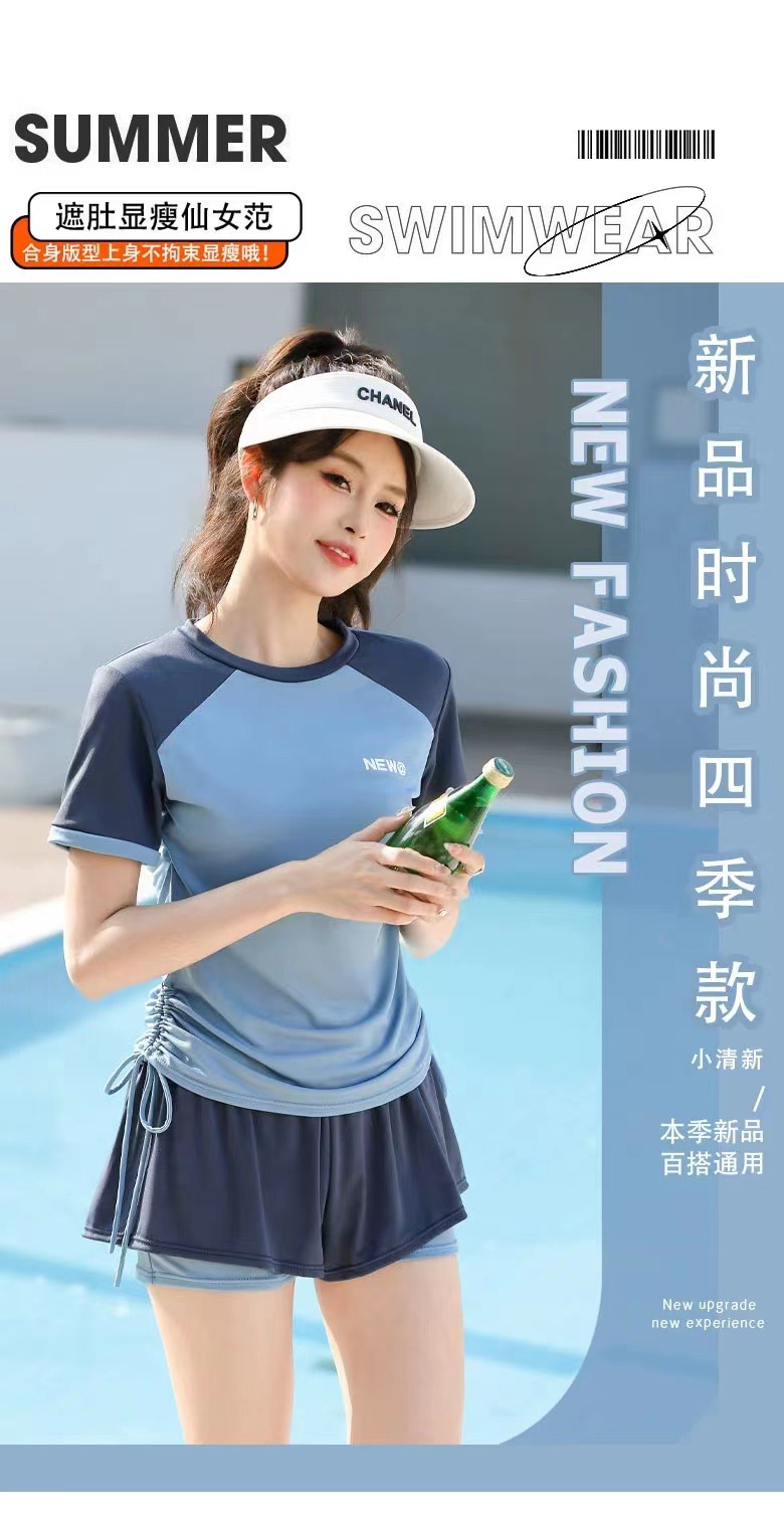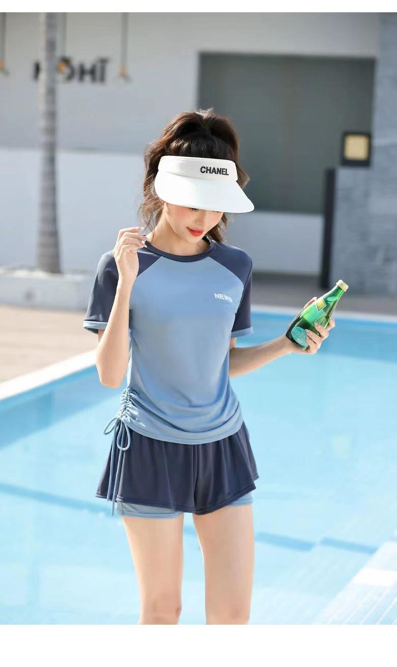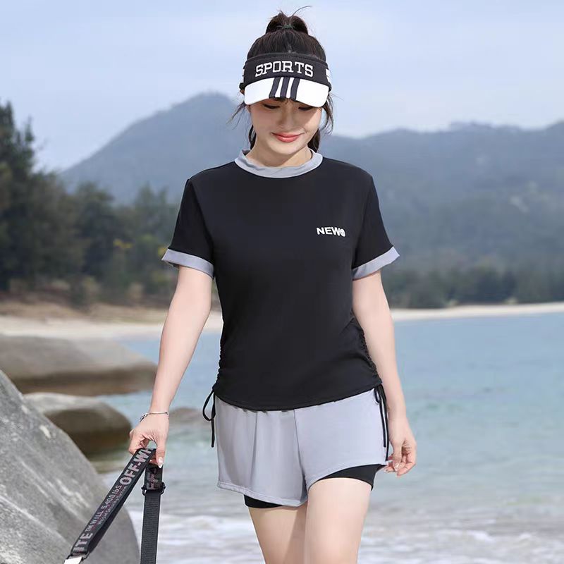 플러스 사이즈 수영복 여성 스플릿 스포츠 투피스 캐주얼 보수 한국식 통통녀 고기 뒤덮음 온천스토어 가기