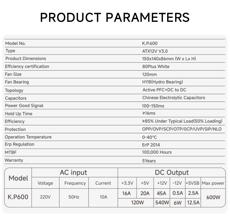 정글 레오파드 KP600 전원 공급 장치 80PLUS 화이트 브랜드 인증 데스크톱 컴퓨터 호스트 600W 게임 음소거 전원 공급 장치
