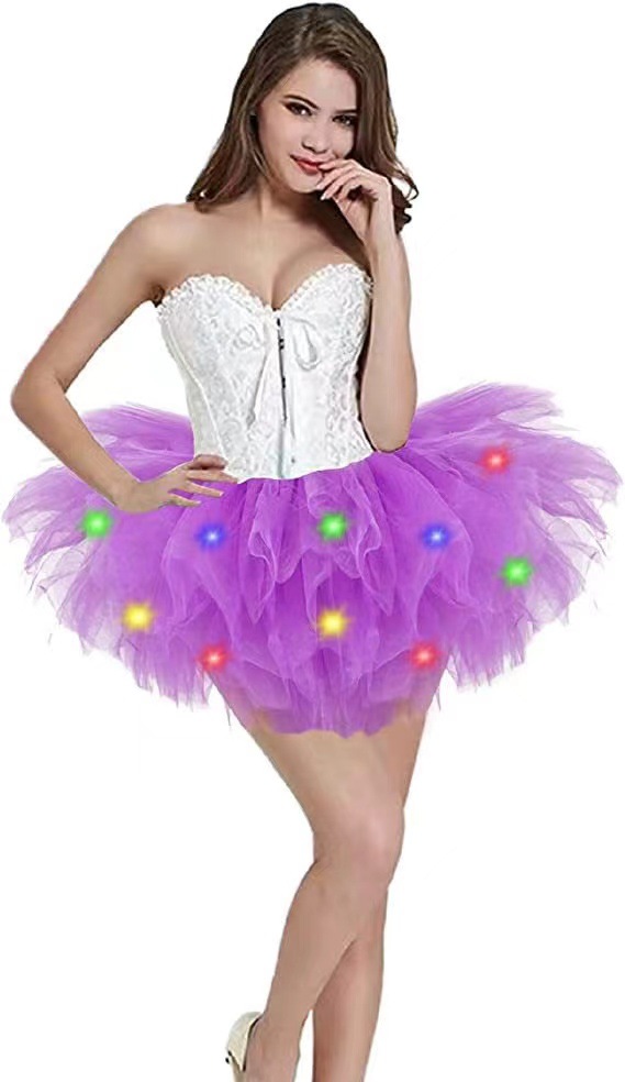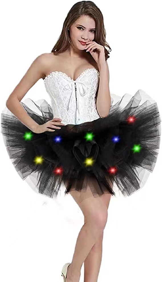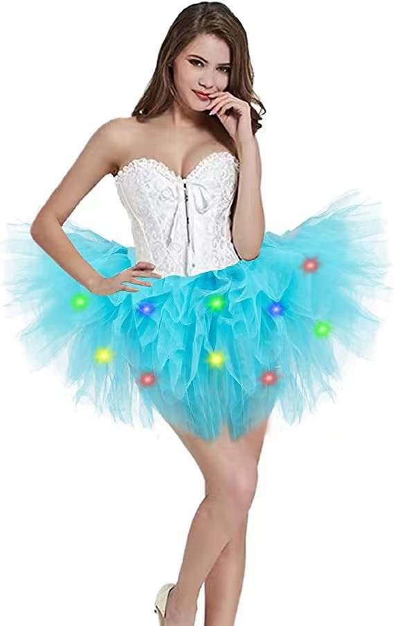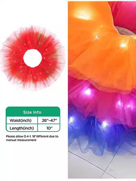 아마존 성인 5 층 미국 메쉬 TUTU 스커트 투투 베일 스커트 플러스 LED 조명 메쉬 스커트 비치 스커트스토어 가기