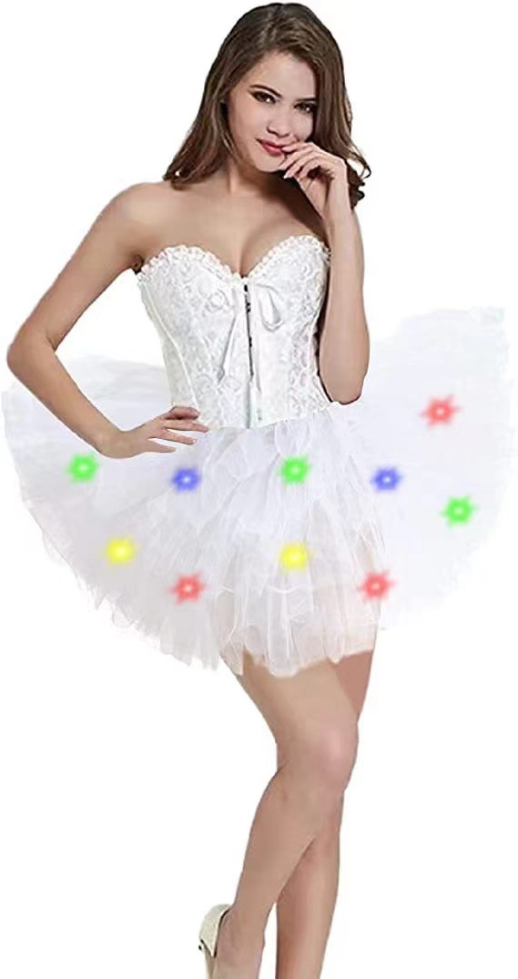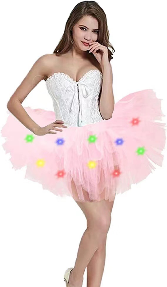 아마존 성인 5 층 미국 메쉬 TUTU 스커트 투투 베일 스커트 플러스 LED 조명 메쉬 스커트 비치 스커트