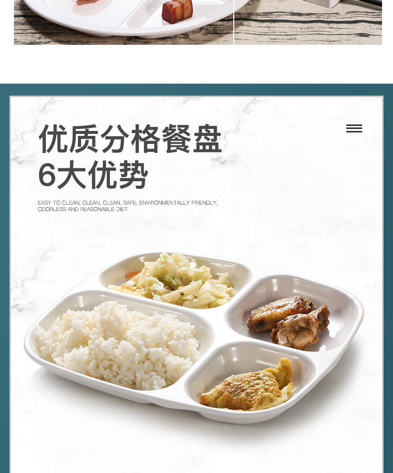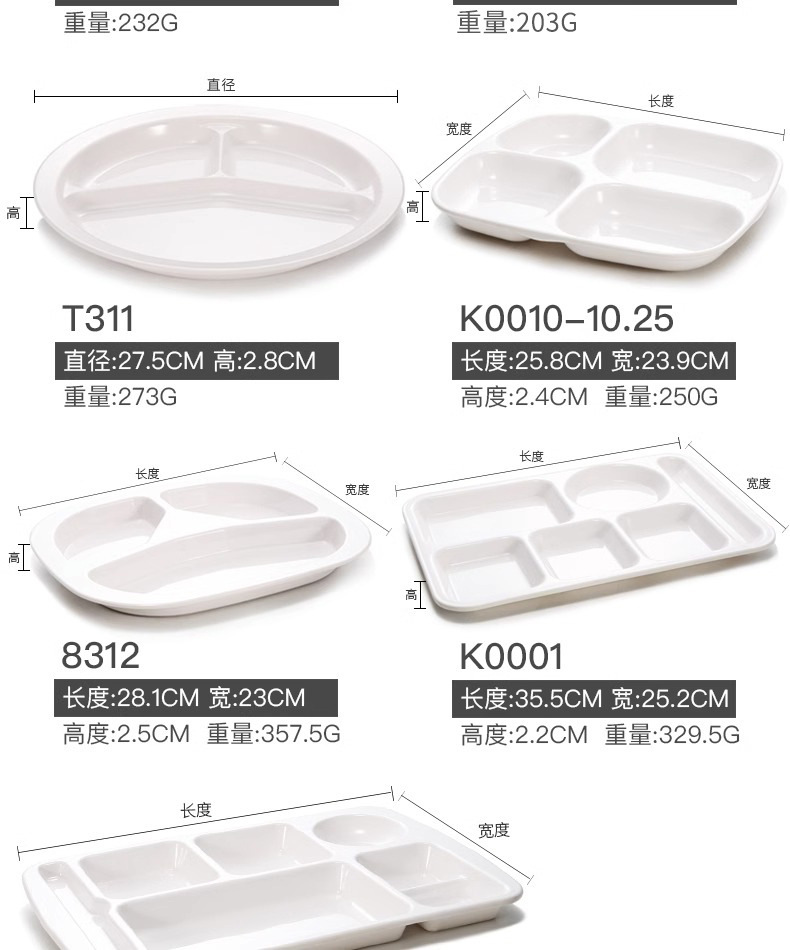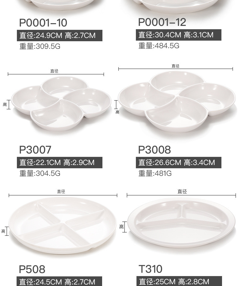 멜라민 식기 스플릿 플레이트 플라스틱 플레이트 분할 3 칸 4 칸 푸드 플레이트 스쿨 매점 6 칸 패스트 푸드 플레이트