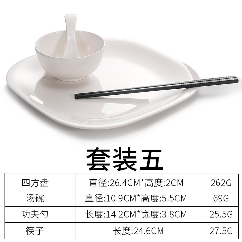 • 흰색 값 세트 1 접시 그릇 숟가락 젓가락