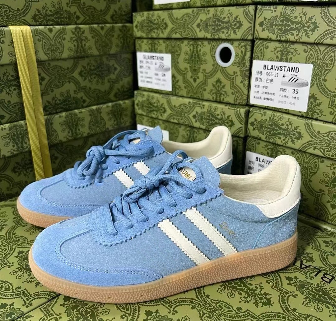 Cowhide 버전 ~ 블루 레트로 클래식 독일 트레이닝 신발 라운드 발가락 레이스 업 캐주얼 운동화 여성을위한 올 매치 플랫 포레스트 검프 신발스토어 가기