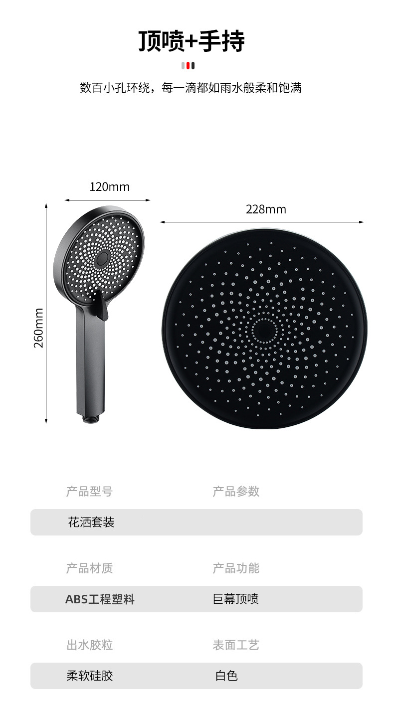 블랙 샤워 노즐 라운드 탑 스프레이 대형 샤워 샤워 헤드 단일 압력 비 샤워 샤워 세트