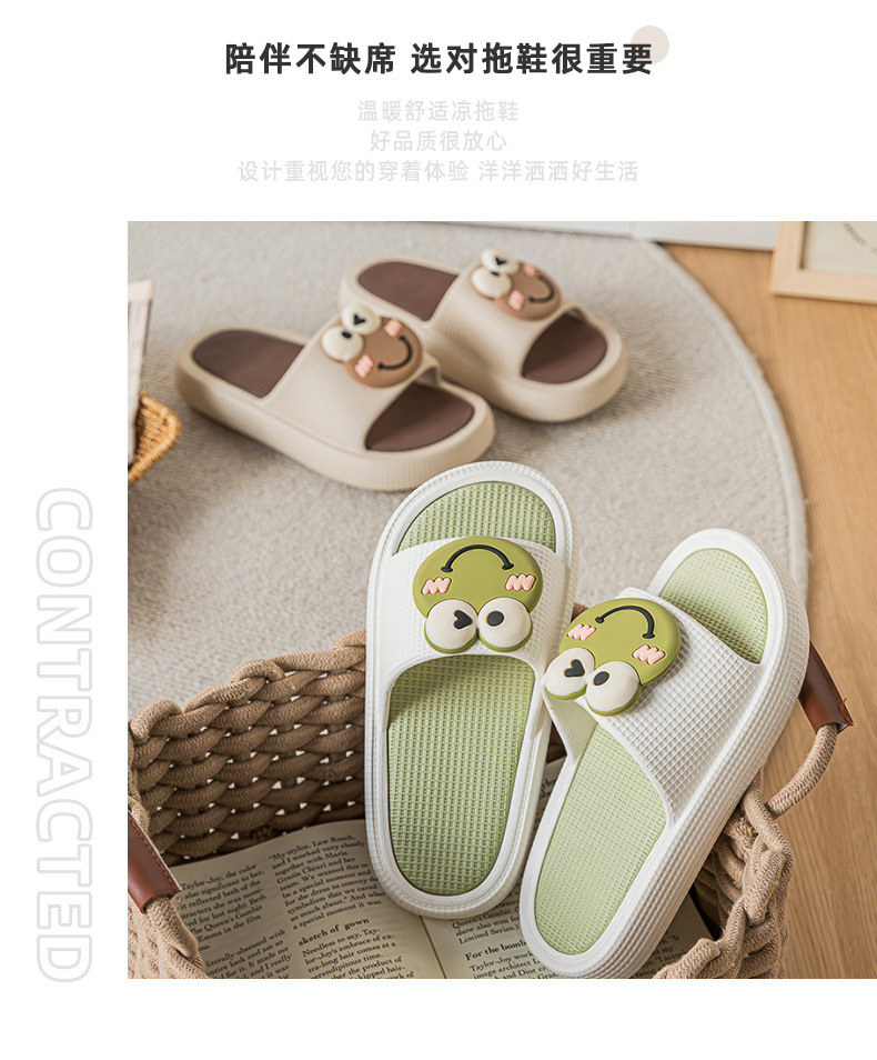 새로운 EVA 부드러운 바닥 단계 배설물 느낌 샌들 여성 하이 엔드 여름 야외 미끄럼 방지 조명 만화 슬리퍼 도매 착용