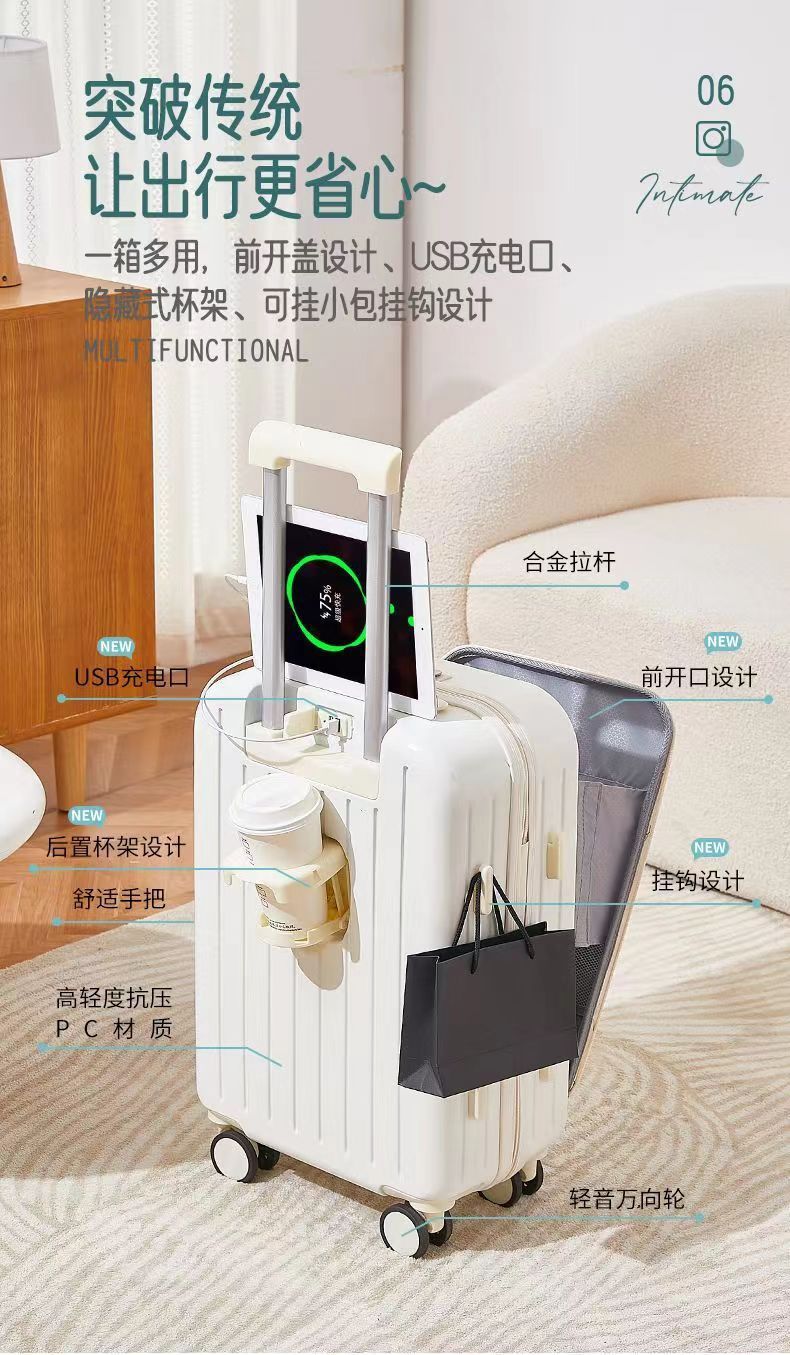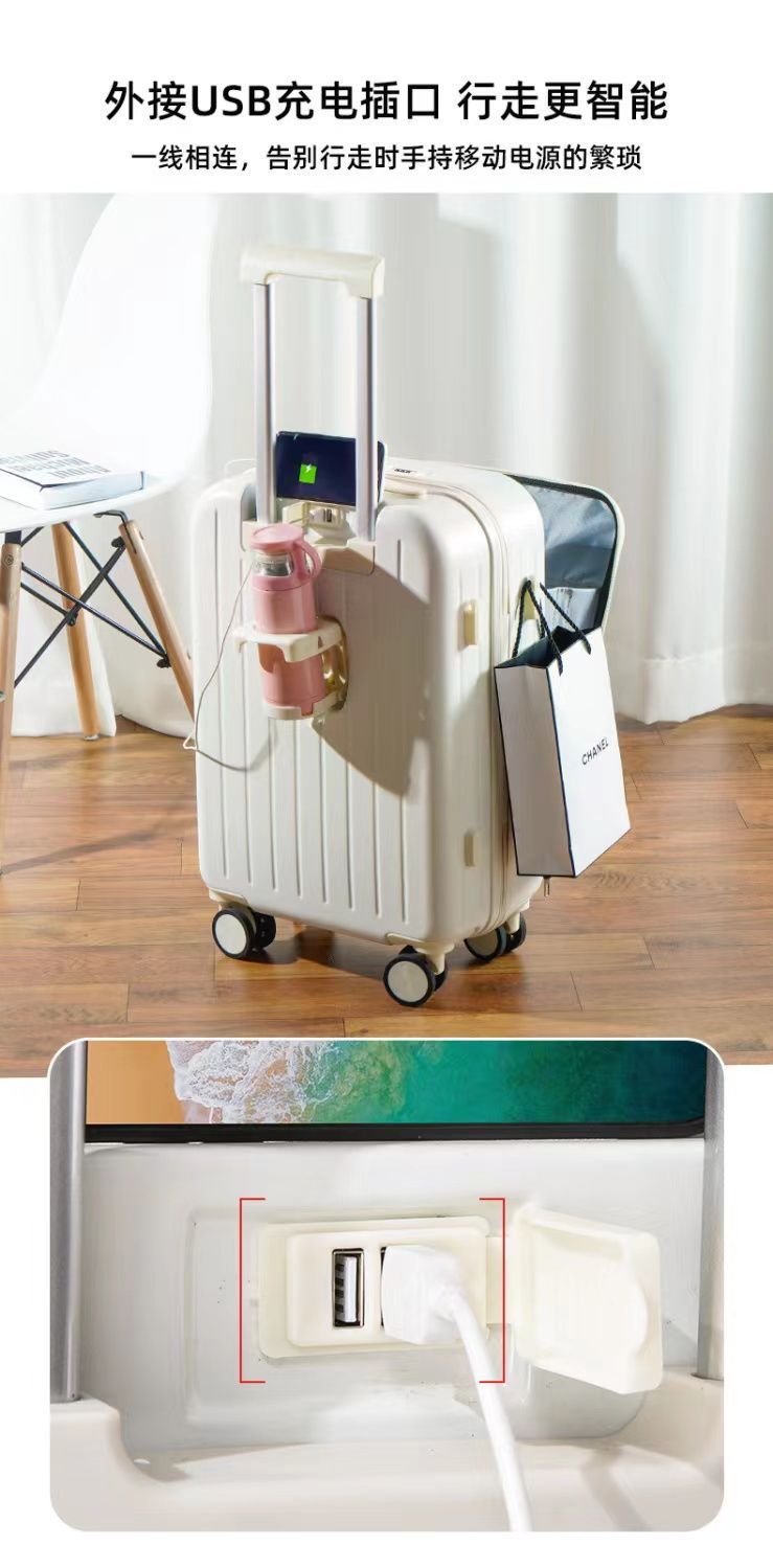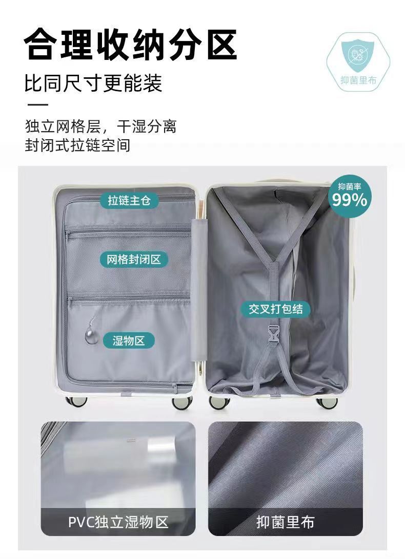 전면 개방 트롤리 케이스 유니버설 휠 수하물 상자 여성의 20 인치 탑승 암호 상자 24 인치 가방 다기능 상자