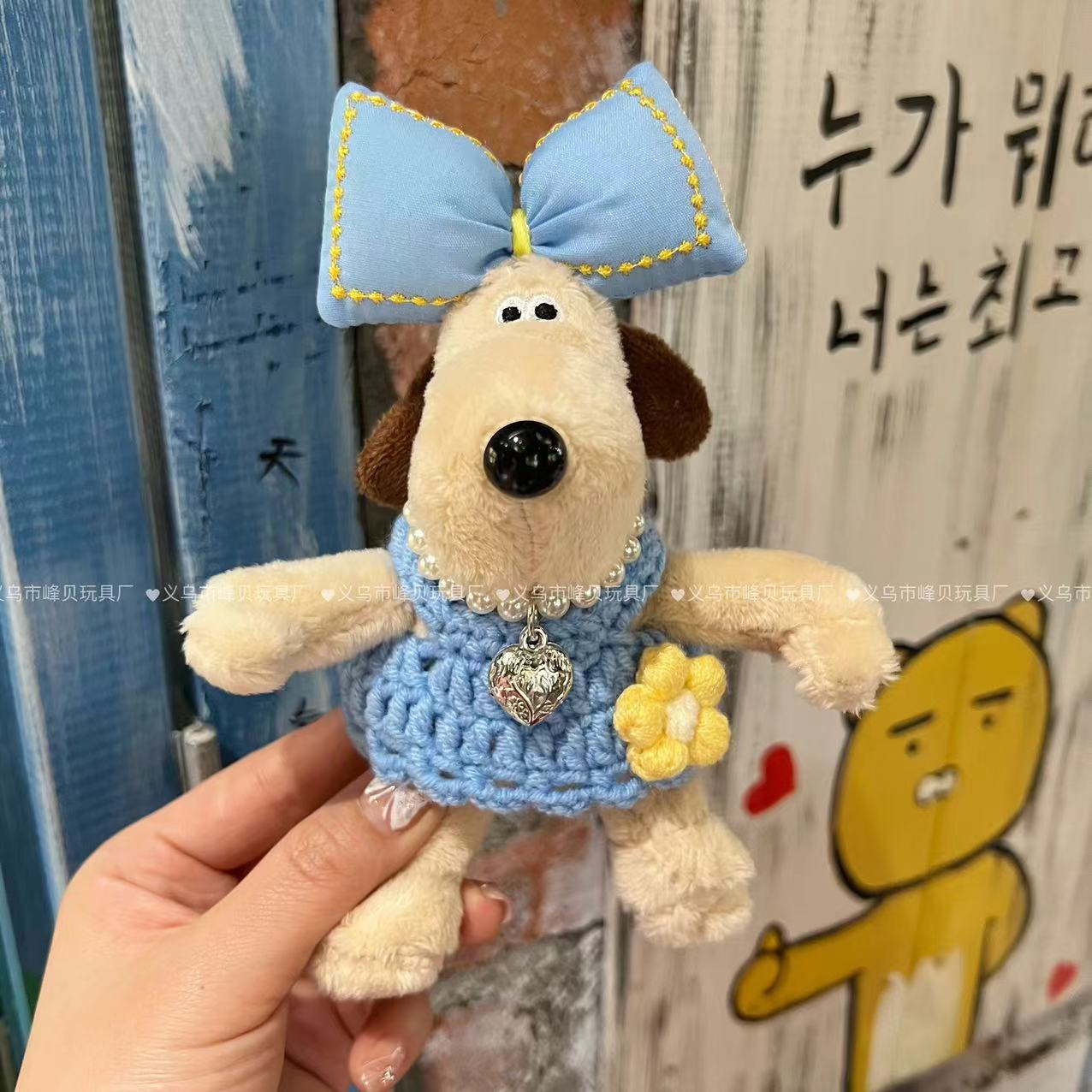 새로운 13cm 핸드독 니트 스웨터 인형 펜던트 백 한국 인형 뜨거운 판매 공장 직접 공급