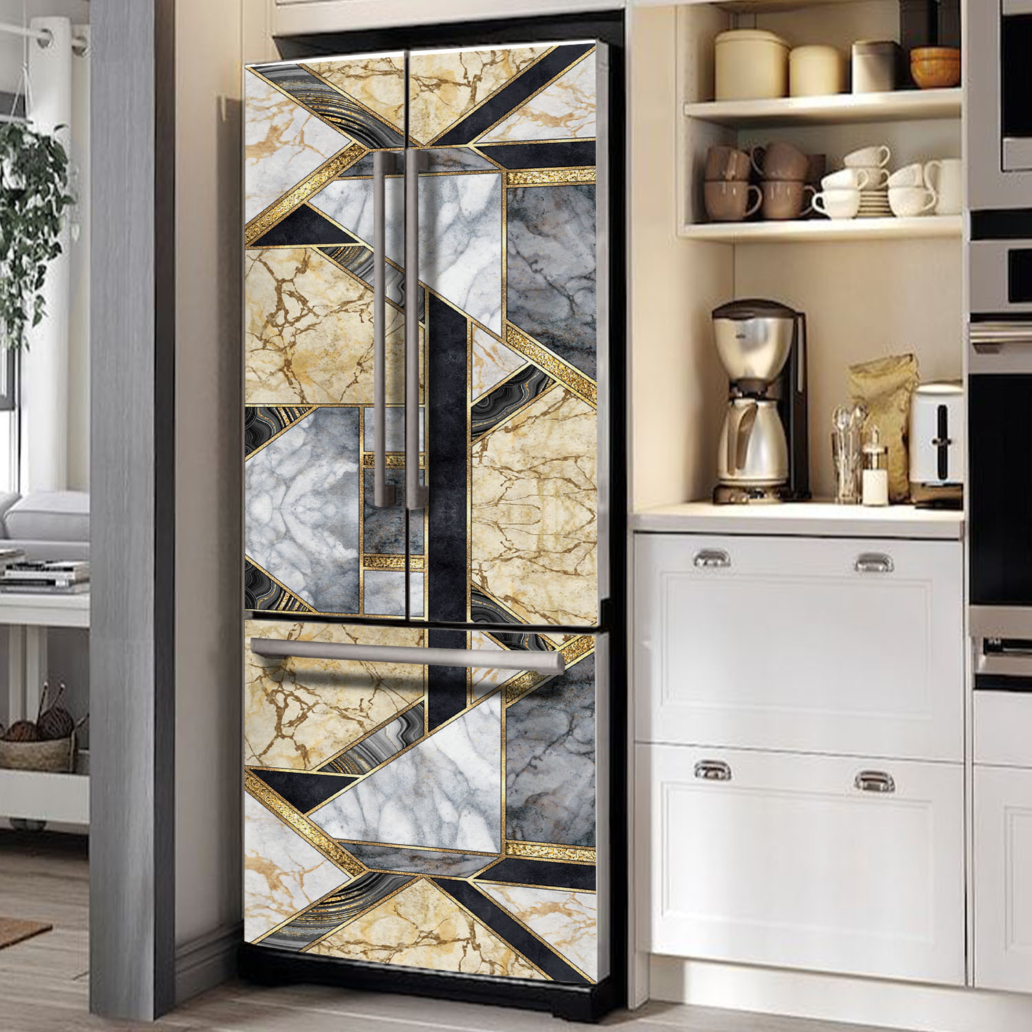Funlif 럭셔리 그레이 골드 스티칭 대리석 양각 냉장고 스티커 홈 옷장 슬라이더 도어 리노베이션 도어 스티커 RM032스토어 가기
