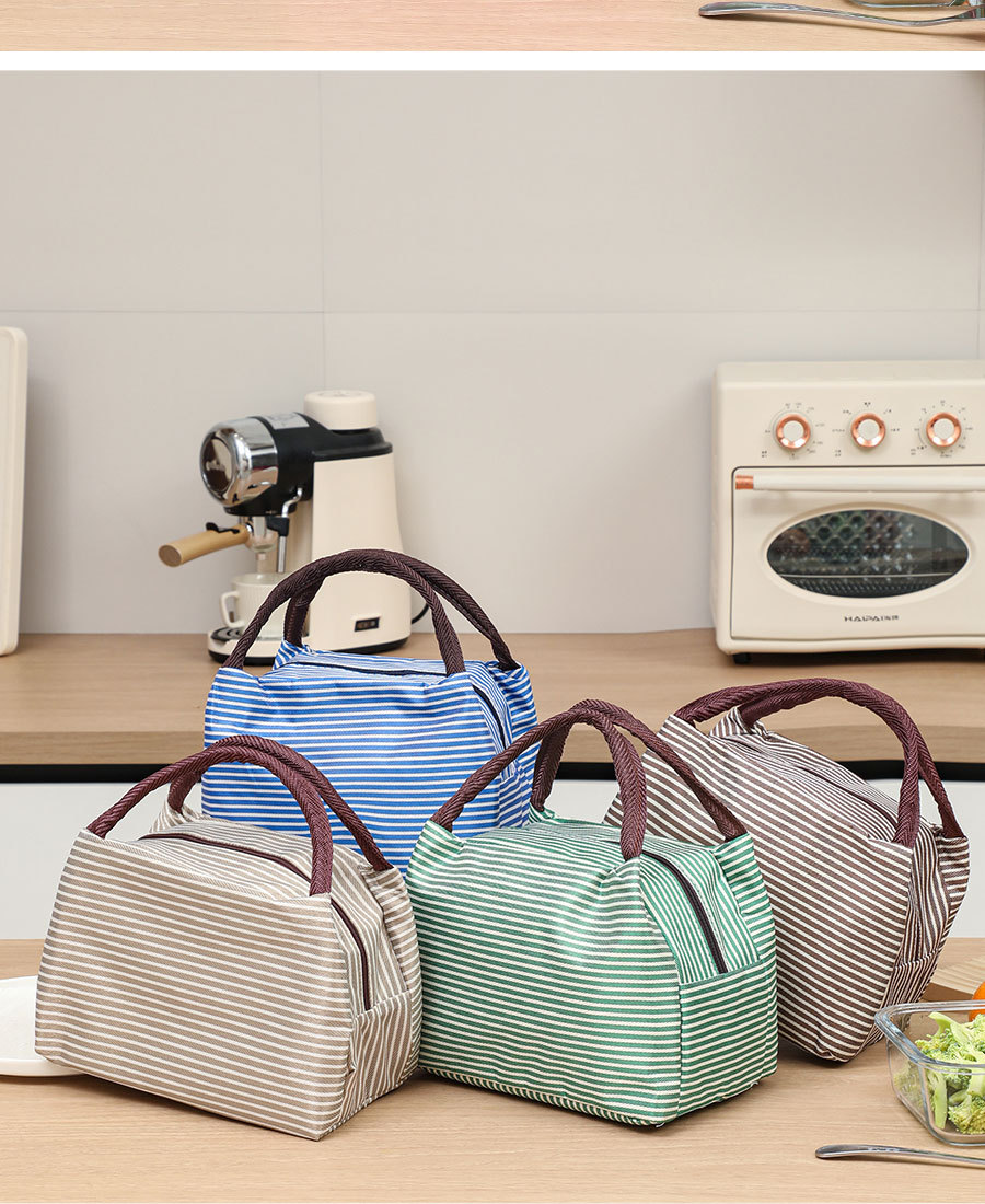 간단한 줄무늬 휴대용 단열 가방 도시락 보관 가방 알루미늄 단열 도시락 작업 및 학교 식사 가방 식사 가방스토어 가기