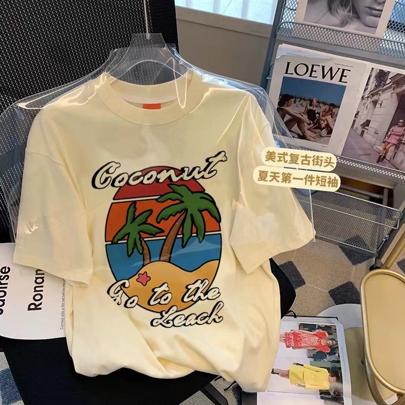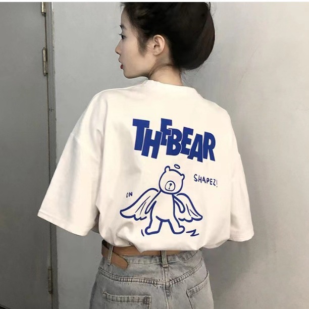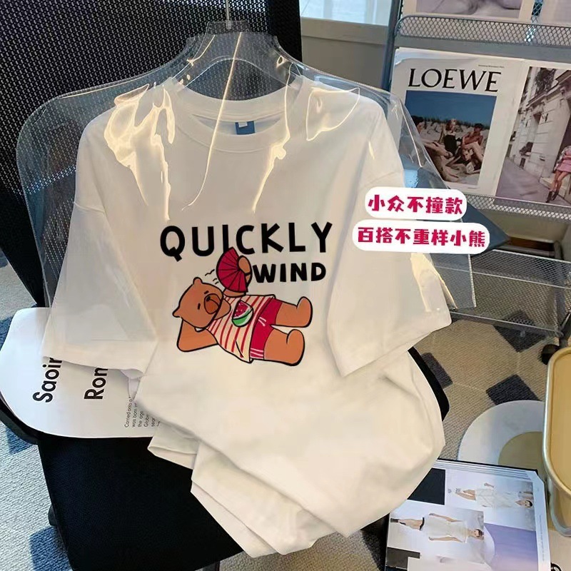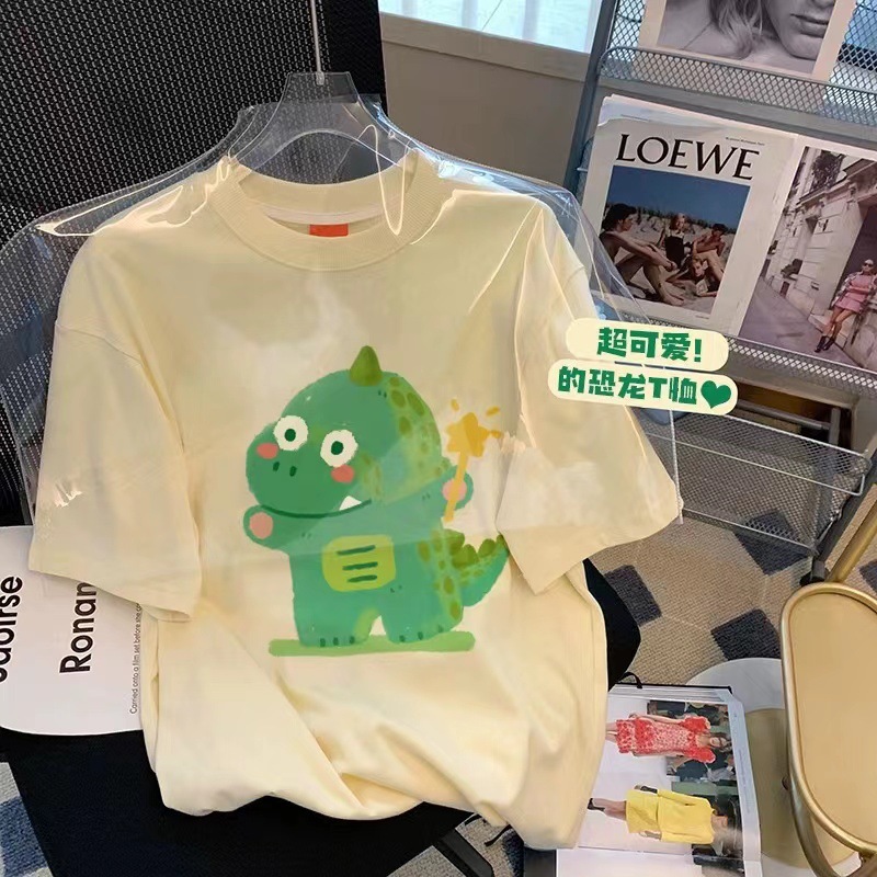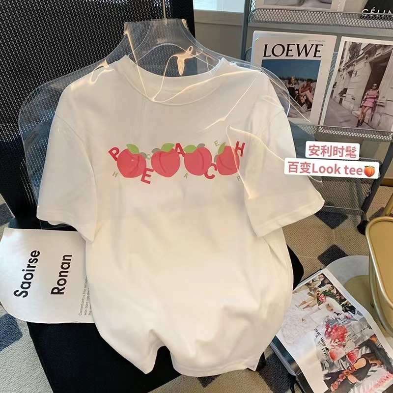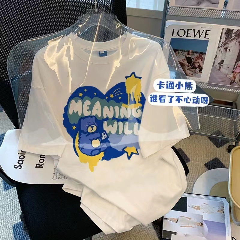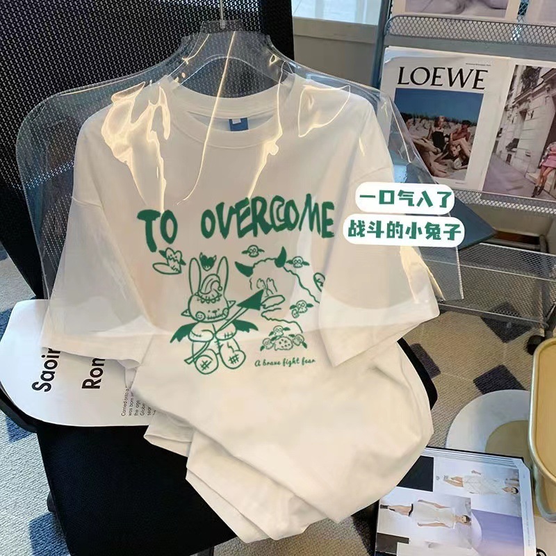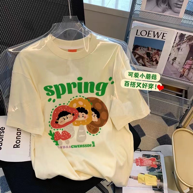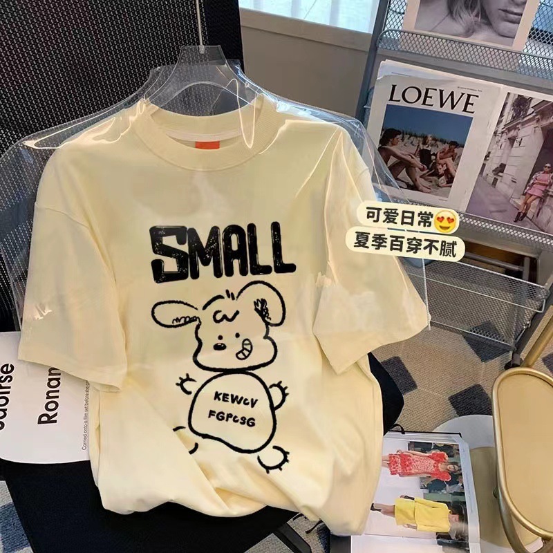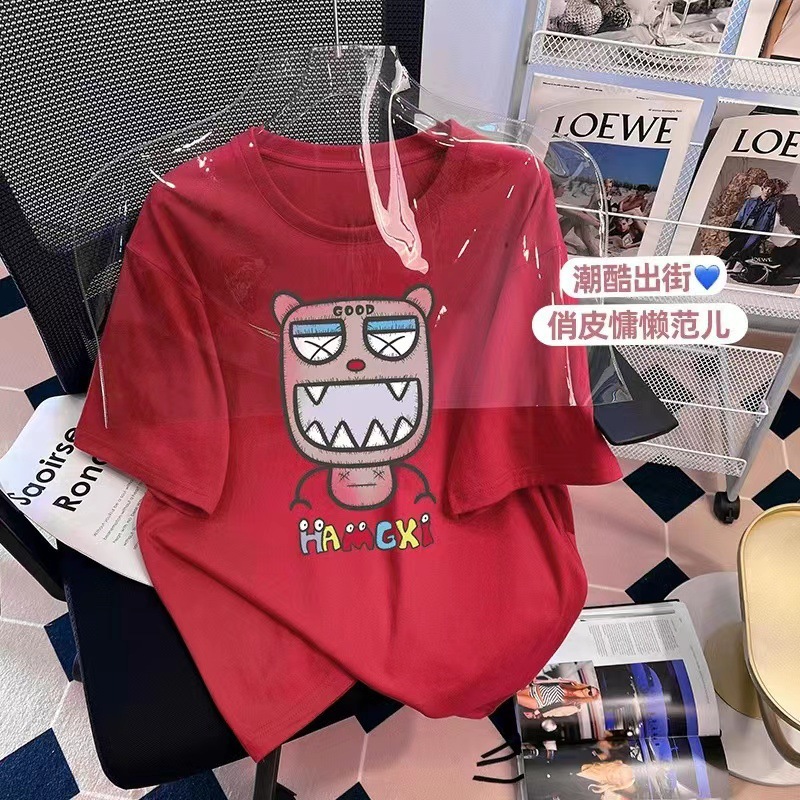 순면 라운드넥 애니메이션 만화 프린트 반팔 티셔츠 여성용 2025 여름 신상 루즈핏 중간 길이 캐주얼 상의스토어 가기