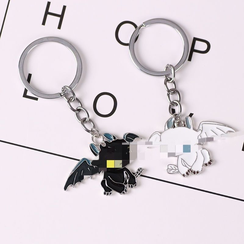 흑백 용 목걸이 펜던트 키 체인 귀여운 커플 만화 남녀 학생 발렌타인 데이 선물 열쇠 고리스토어 가기