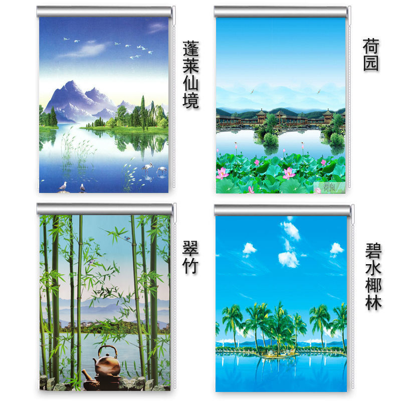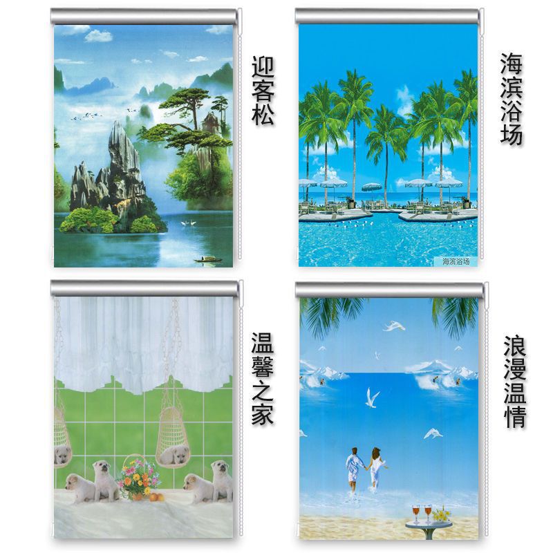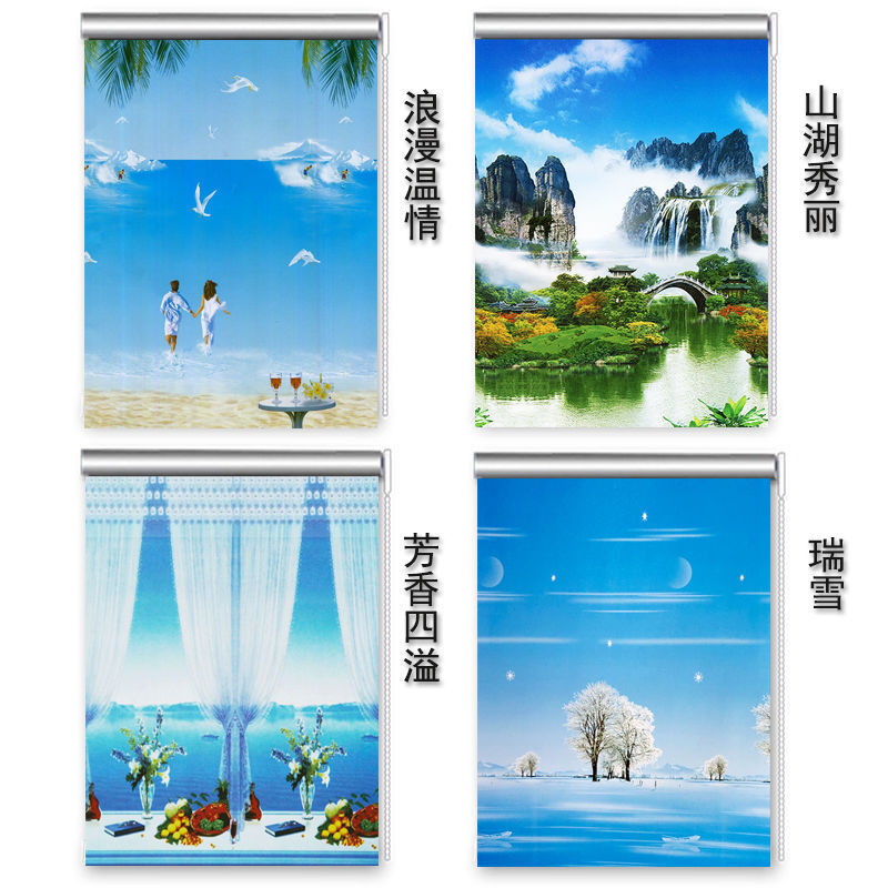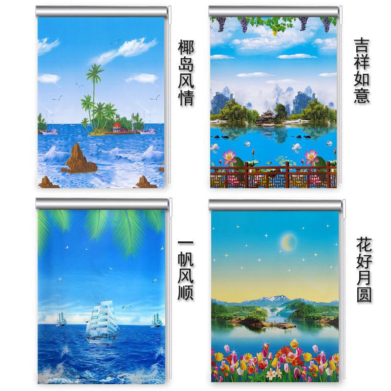 롤업 커튼 펀치 무료 리프팅 침실 거실 주방 발코니 사무실 욕실 태양 보호스토어 가기