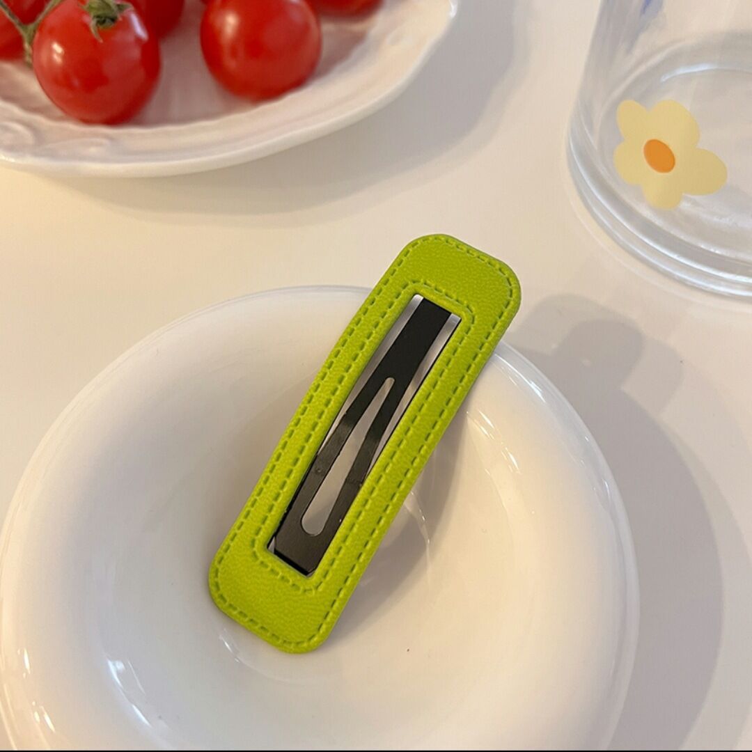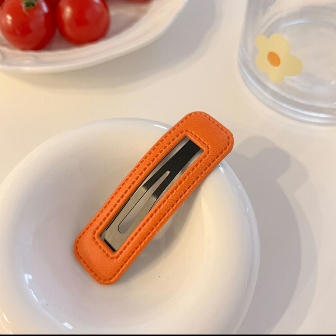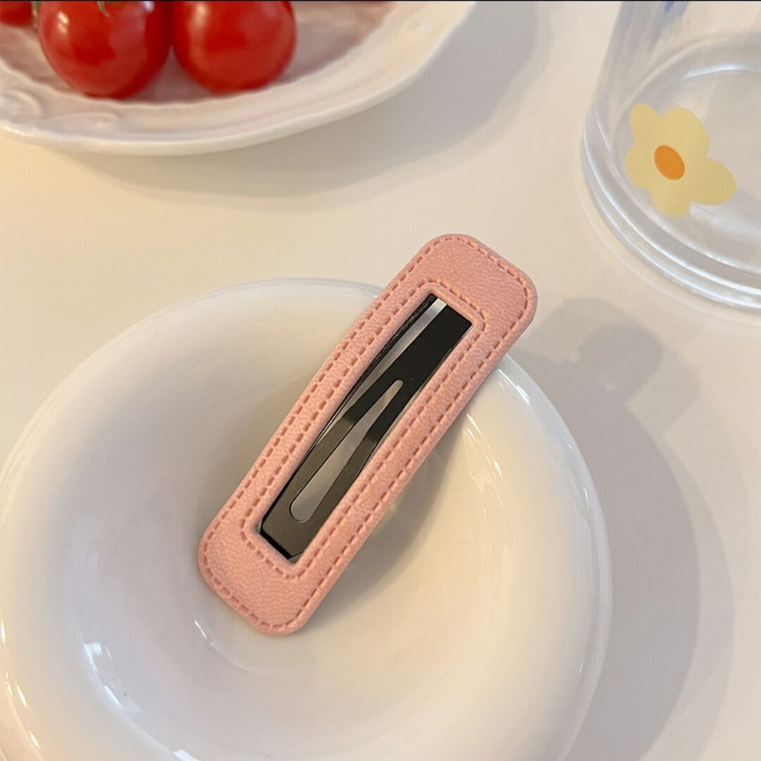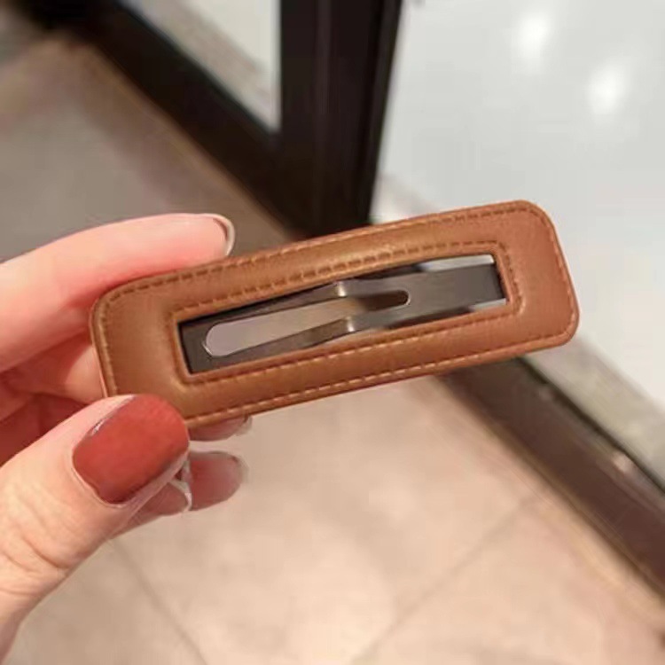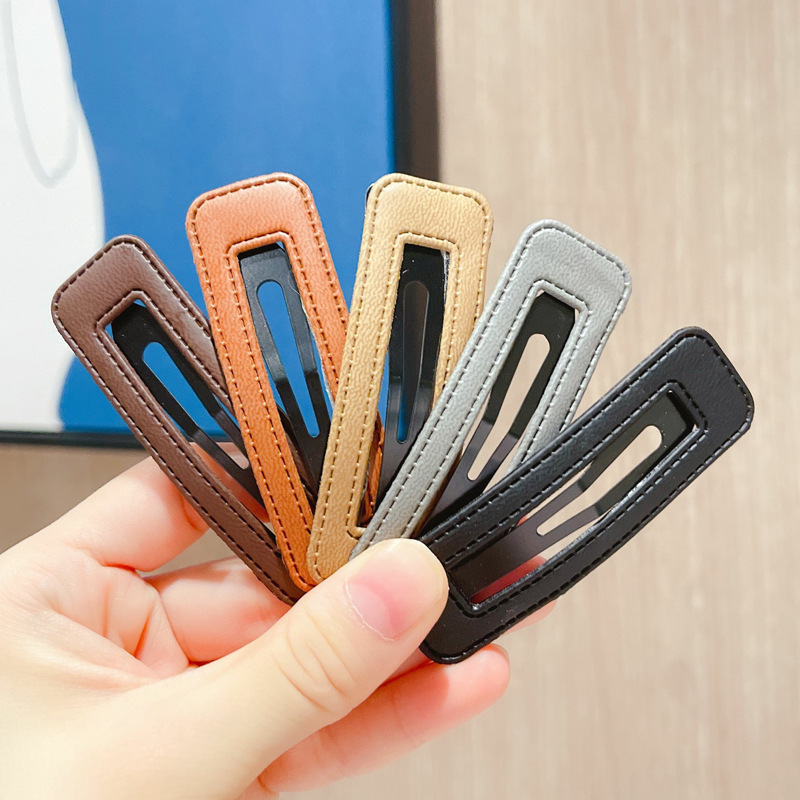 한국 스타일 유행 가죽 헤어핀 인터넷 연예인 간단한 뱅 클립 유행 BB 클립 머리 머리핀 PU 가죽 클립 한국 스타일스토어 가기
