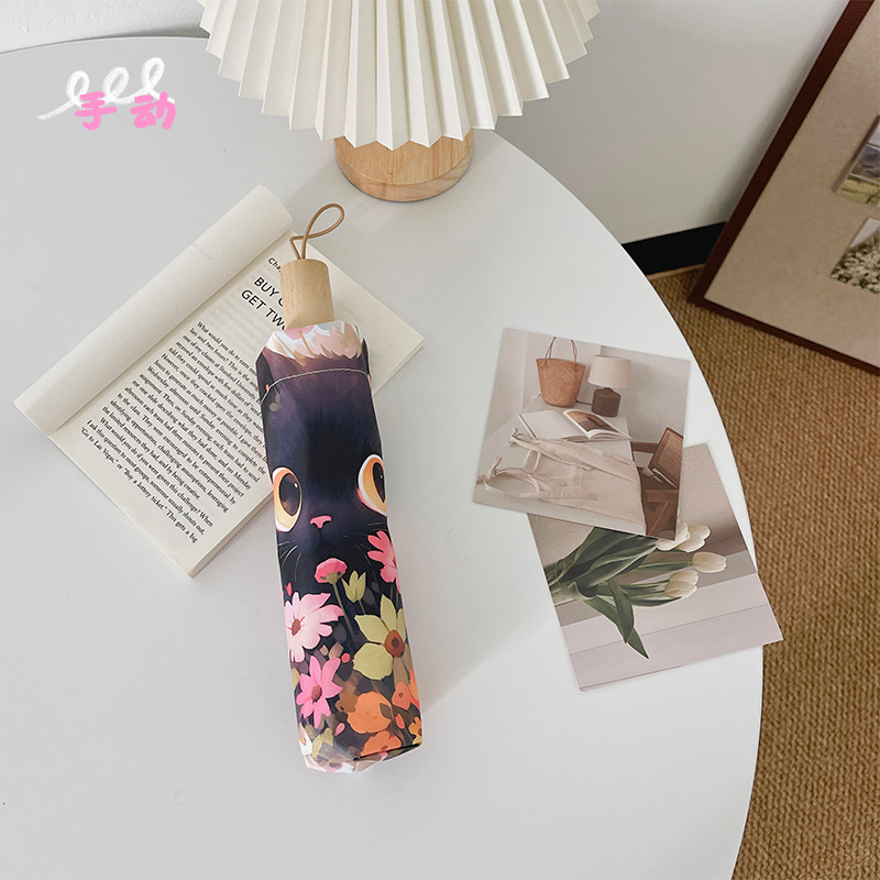 꽃 고양이 만화 접히는 우산 태양 방지 여성의 맑고 비오는 이중 사용 태양 우산 자동 우산 휴대용 우산