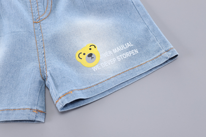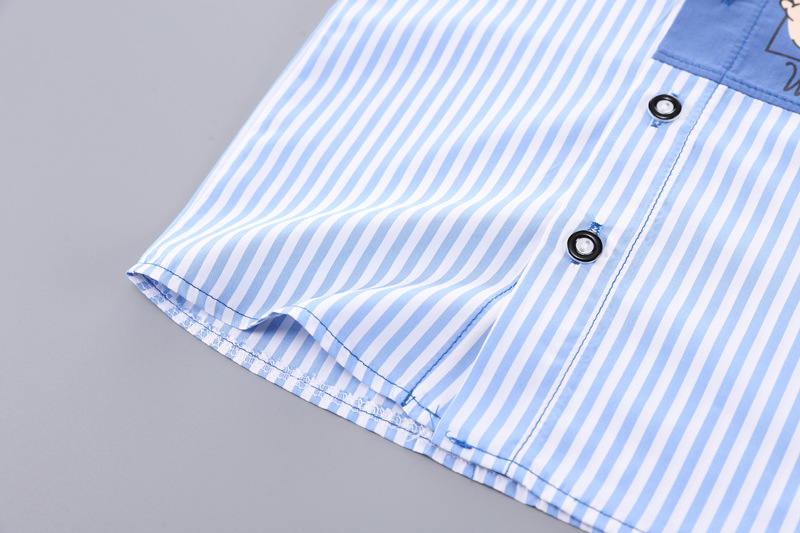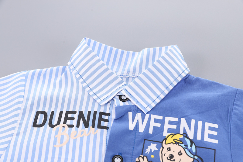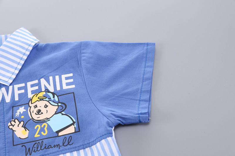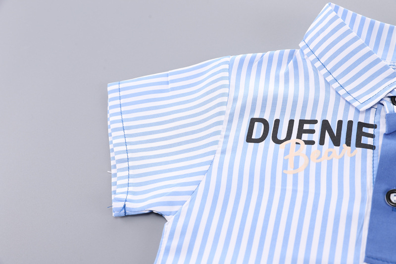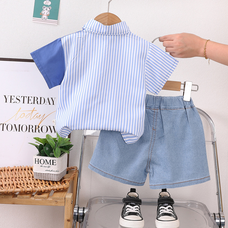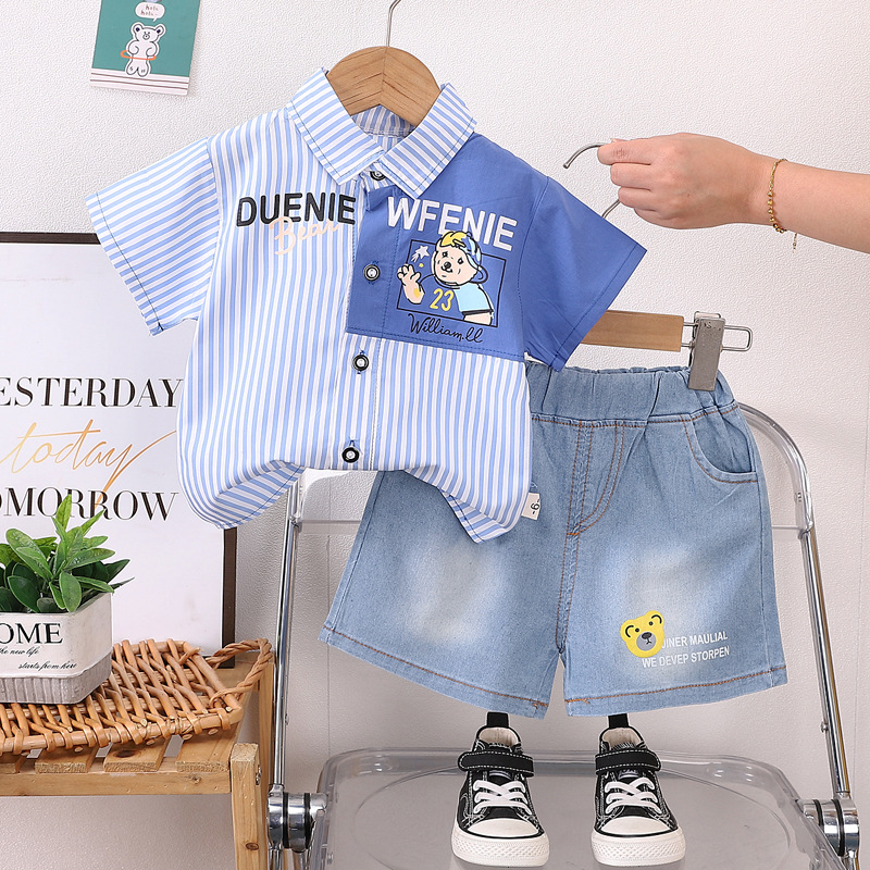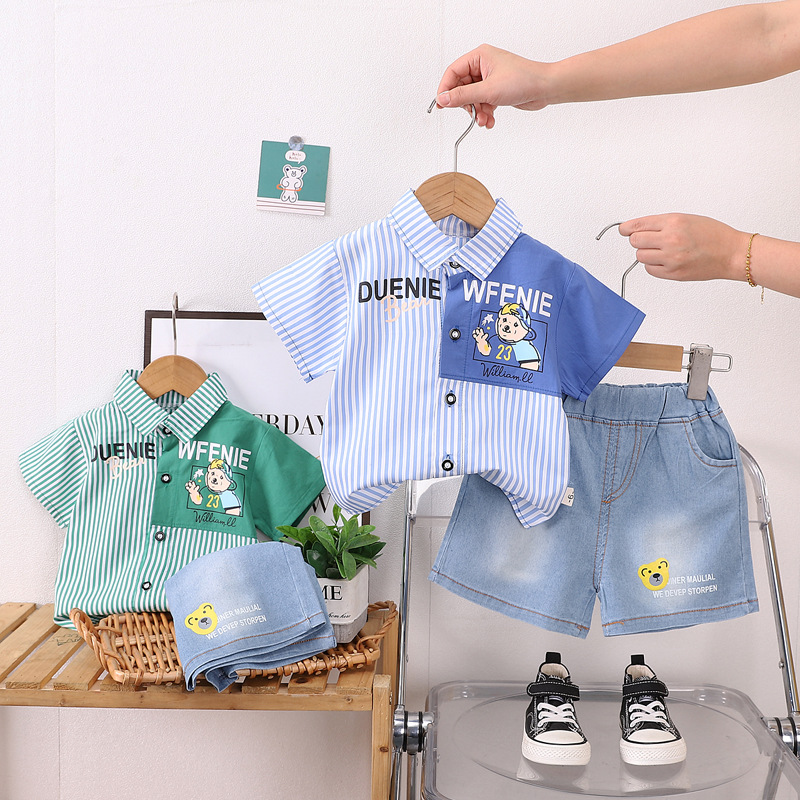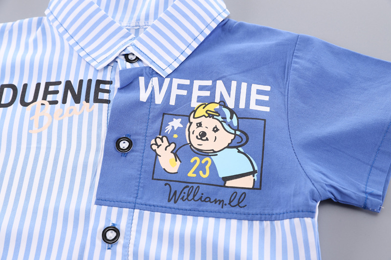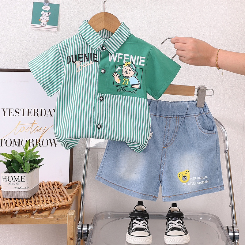 소년 여름 셔츠 세트 여름 새로운 어린이 편안한 패션 바느질 수직 곰 셔츠 세트 트렌디스토어 가기