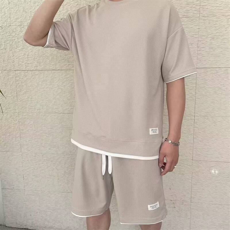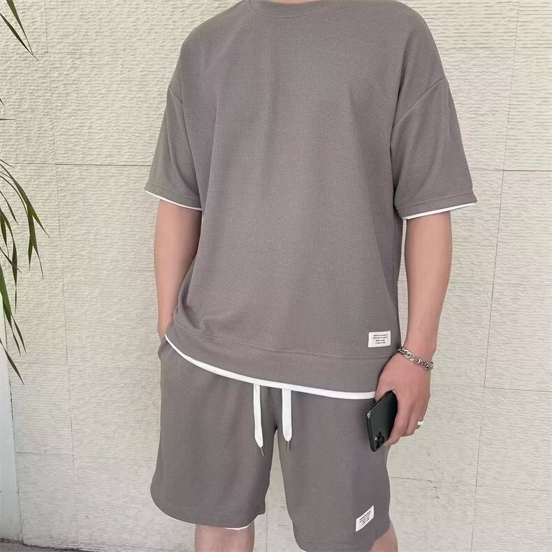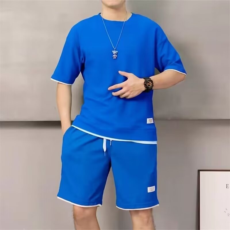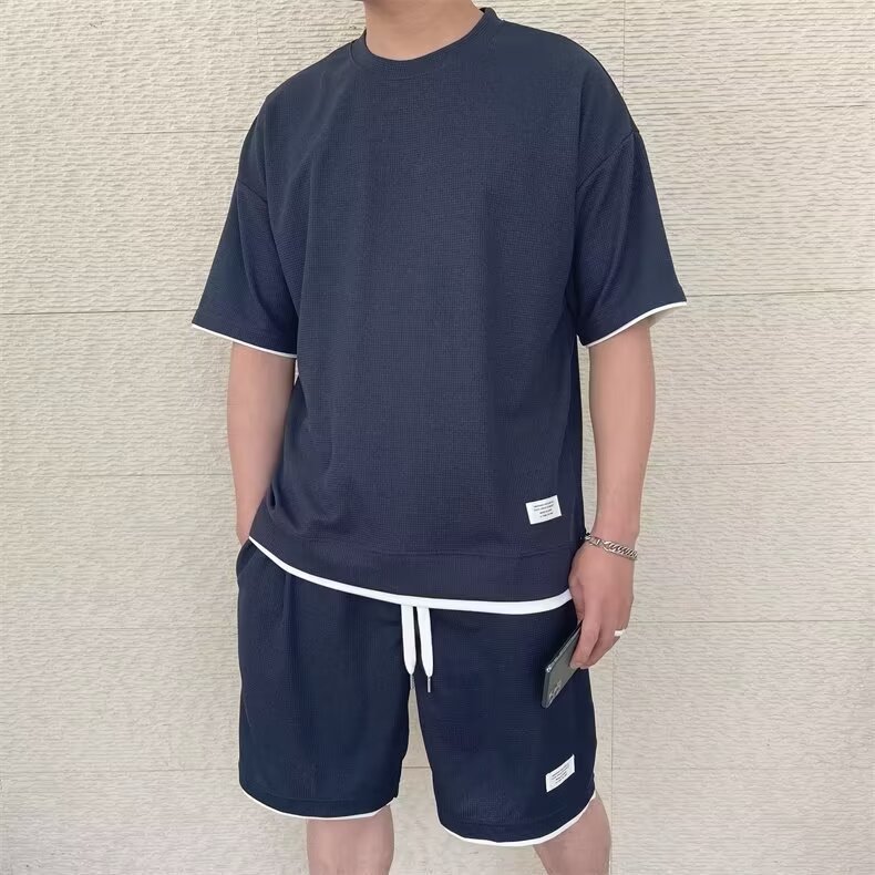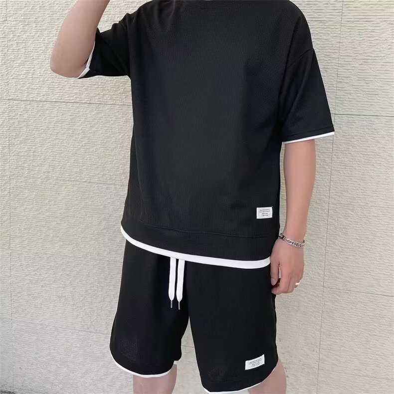 2024 캐주얼 스포츠 세트 남자 여름 반팔 티셔츠 투피스 얇은 유행 정리 반바지 캐주얼스토어 가기