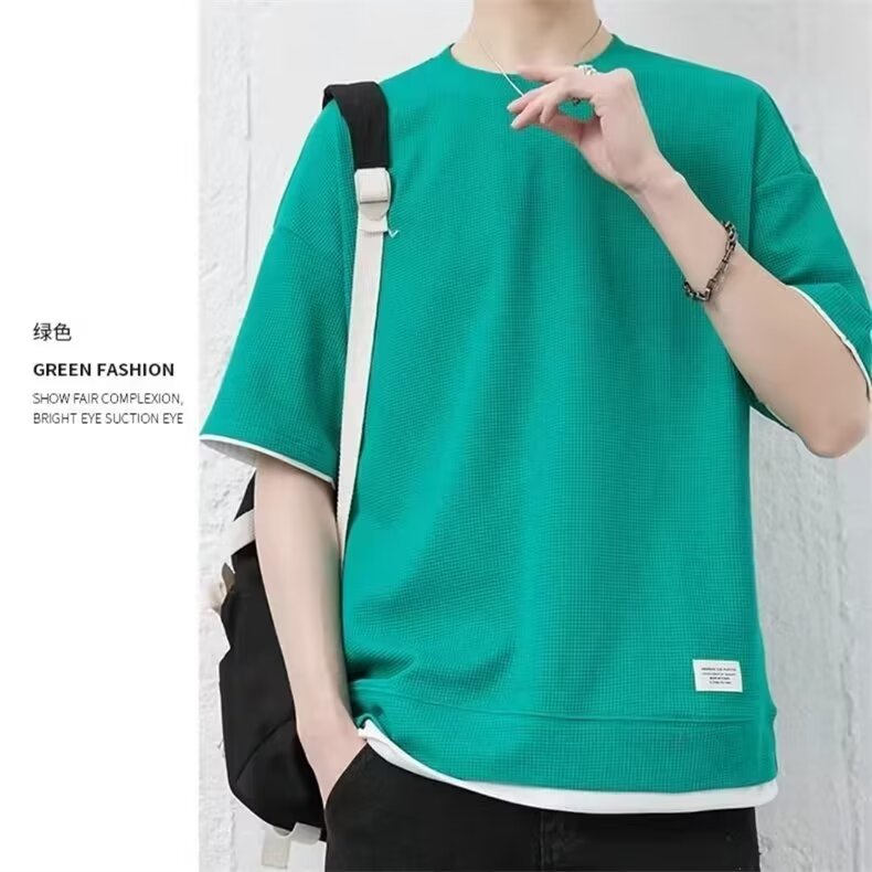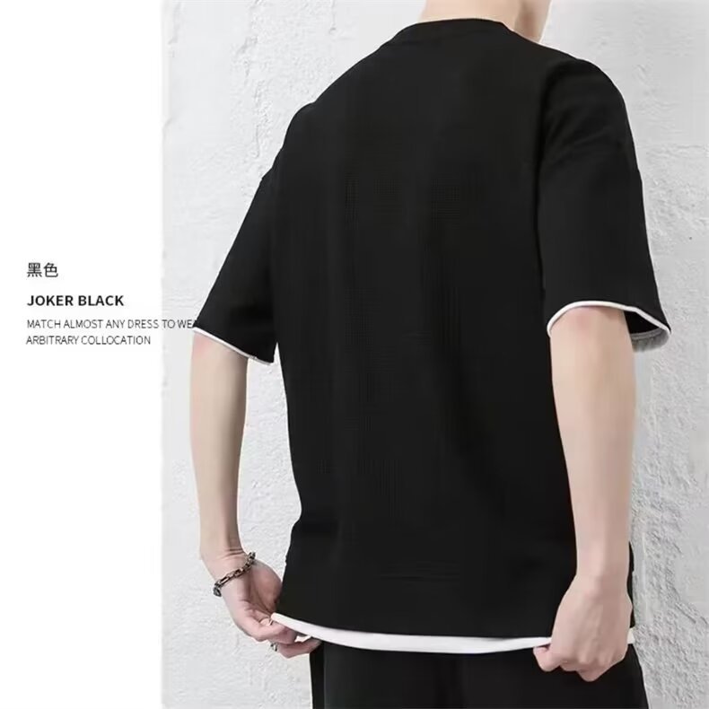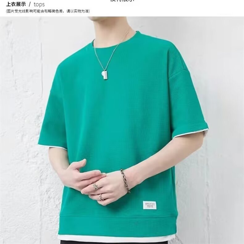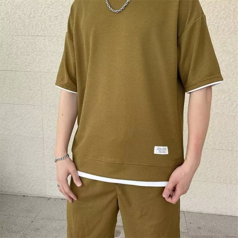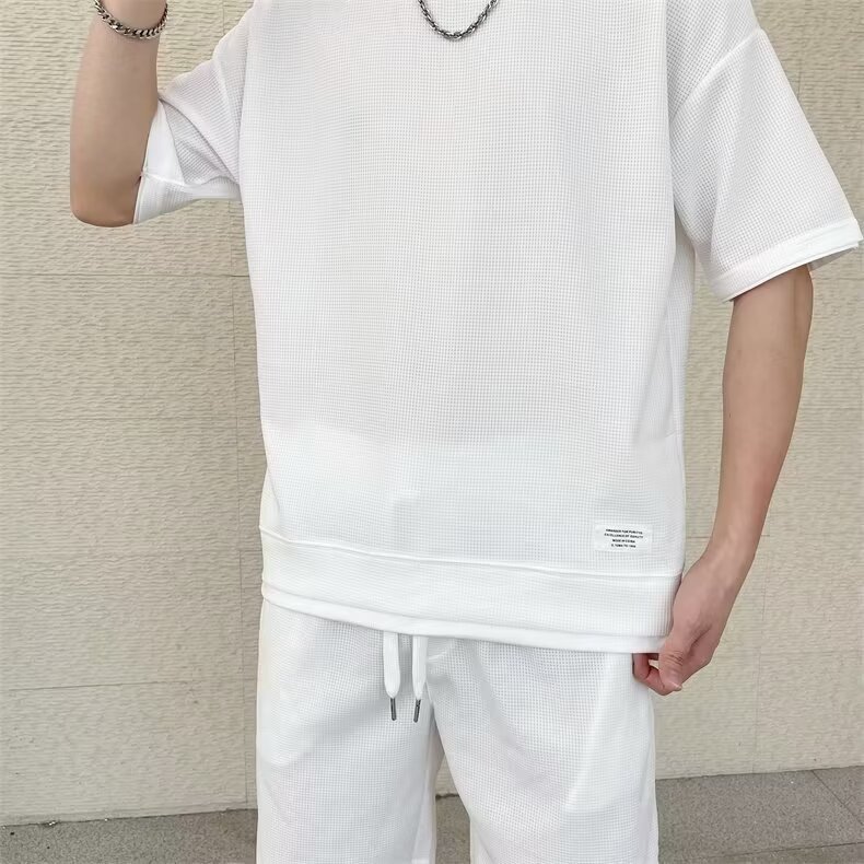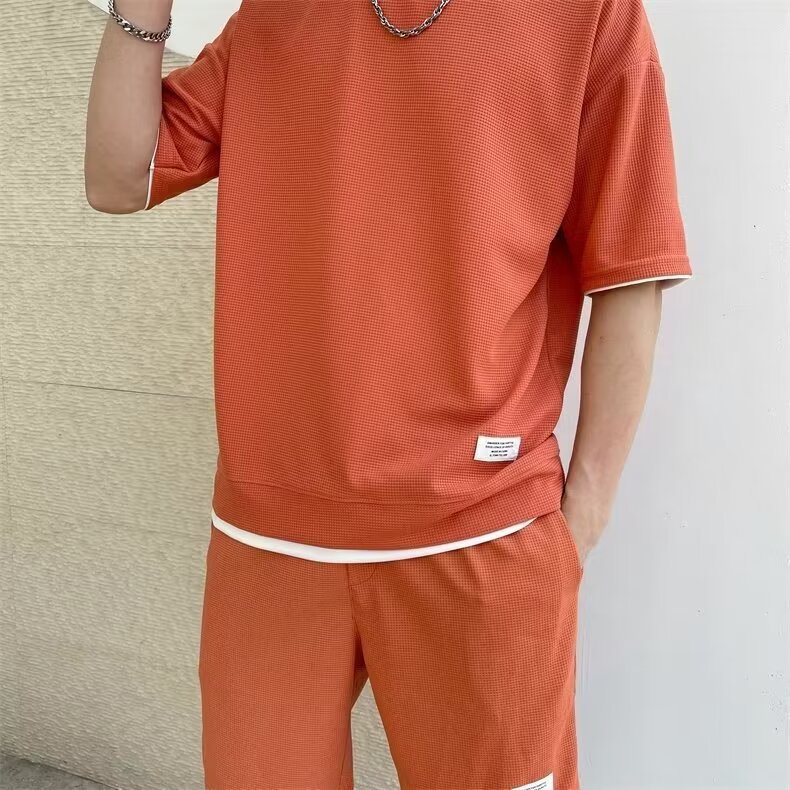 2024 캐주얼 스포츠 세트 남자 여름 반팔 티셔츠 투피스 얇은 유행 정리 반바지 캐주얼스토어 가기