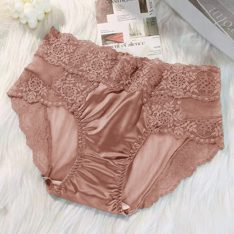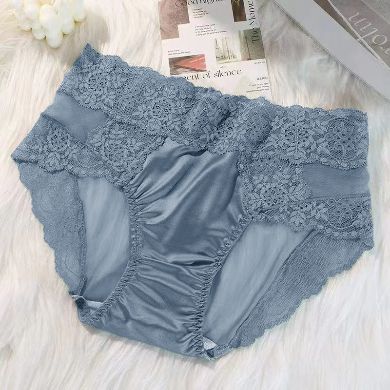 레이스 팬티 여성 프렌치 새틴 고급 ~ 미드 웨이스트 크림 섹시 퓨어 걸의 하이 웨이스트 힙합 브리프