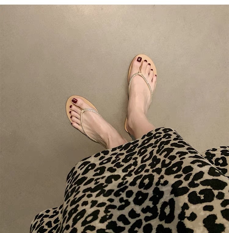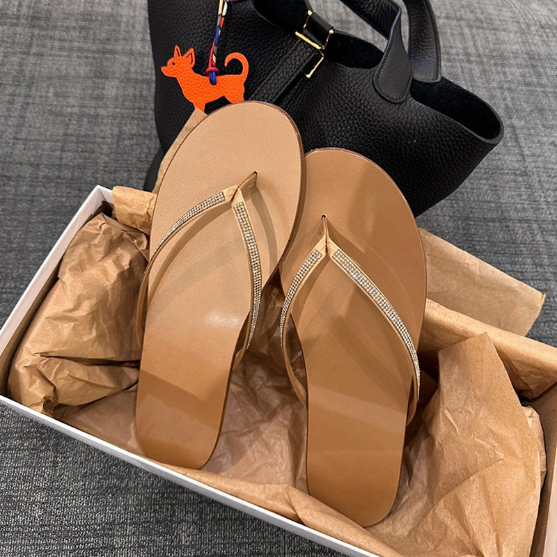 플립 플롭 여성 여름 아우터 2024 새로운 라인스톤 하이 엔드 비치 샌들 페어리 스타일 플랫 플립 플롭